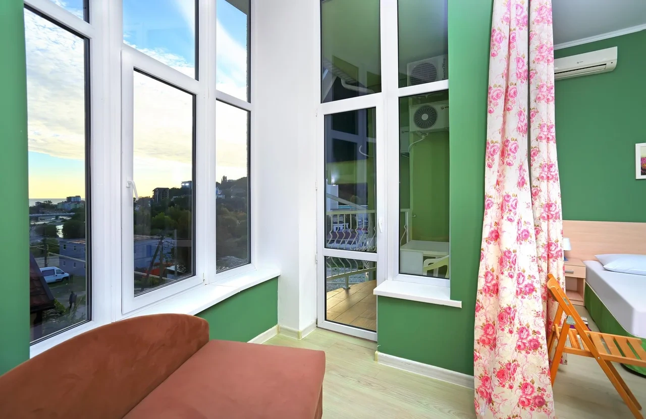 3-х местный номер, большое окно, вид на море, горы, 1,2 этаж
