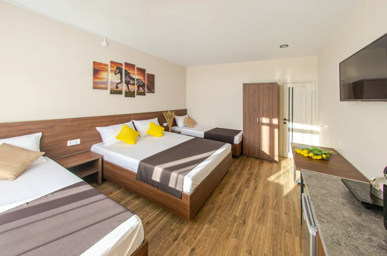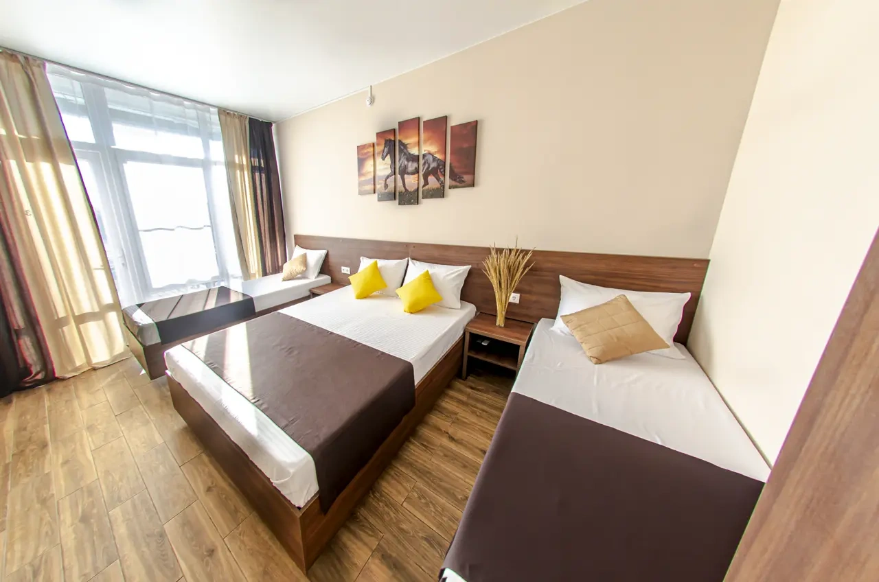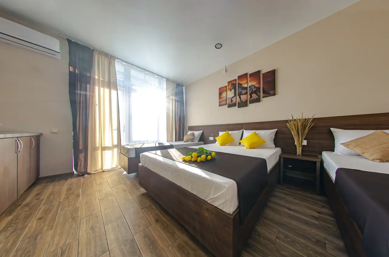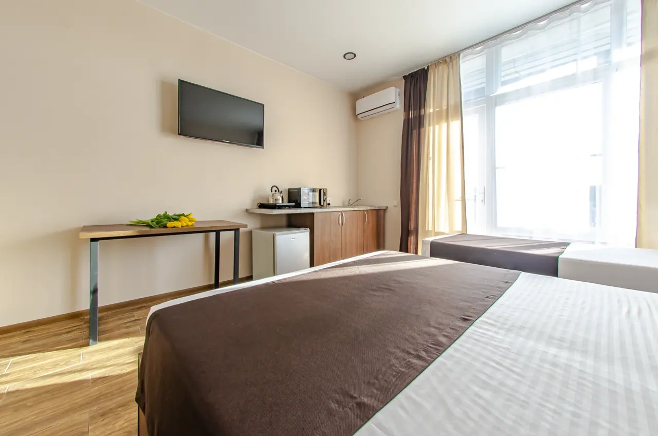 Останавливались проездом в октябре на 1 ночь. Отель чистый, расположен в шаговой доступности от пляжа, дельфинария, аквапарка. В отеле отличный ресторанчик. Персонал - просто молодцы! Все понравилось, замечаний нет