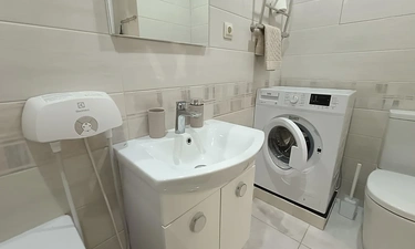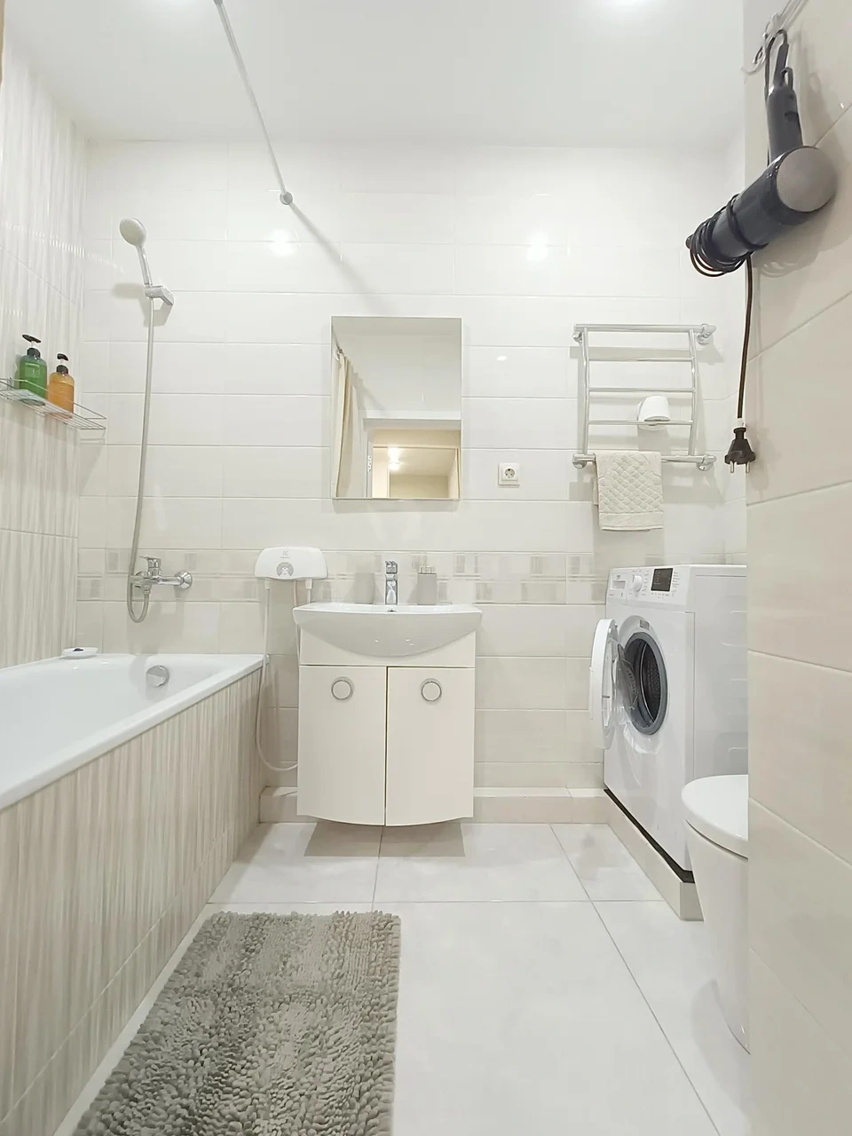 Совместный санузел, стиральная машина, фен. Ванные принадлежности (шампунь, гель для душа, мыло, полотенца);