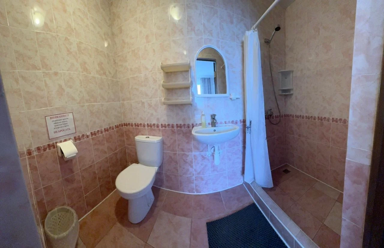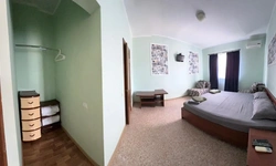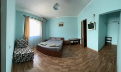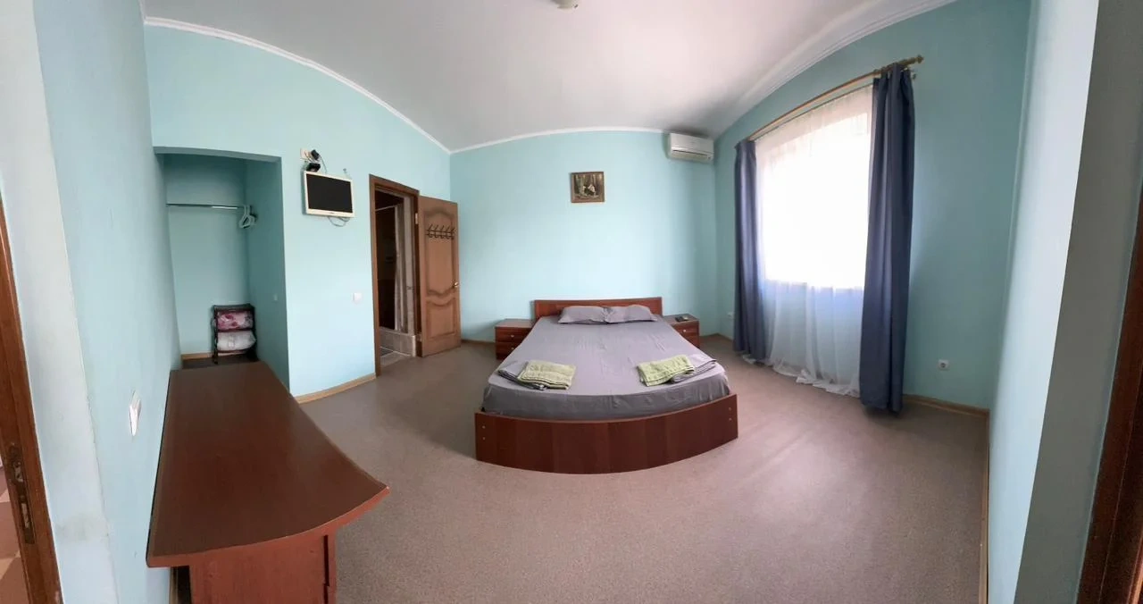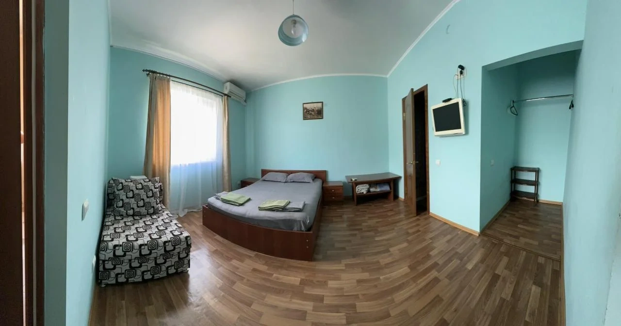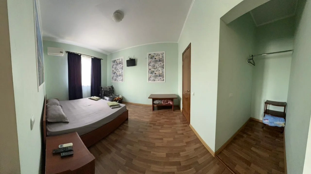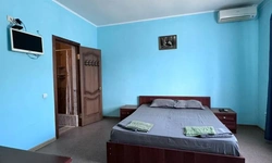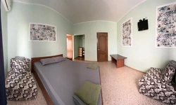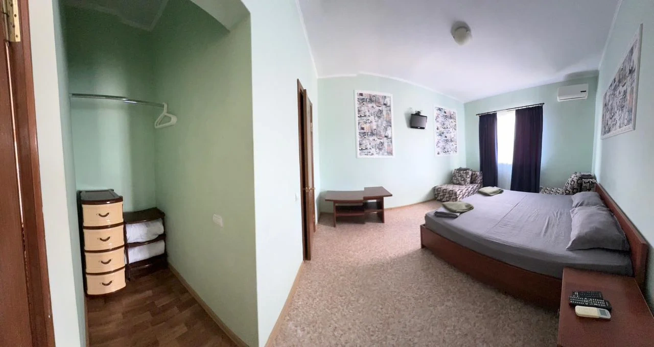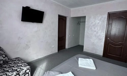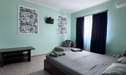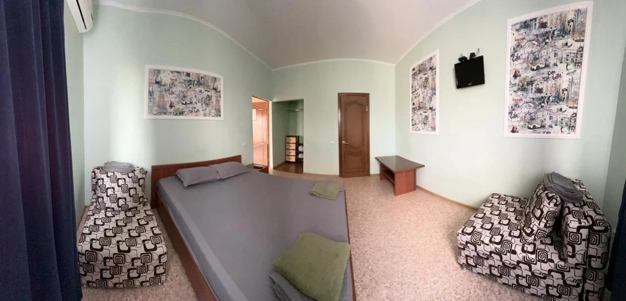 У нас в гостевом доме предлагается двухместный номер с двухспальной кроватью. В дополнение к этому, в номере имеется 2 кресло-кровати для дополнительного размещения гостей. В номере также есть кондиционер, холодильник, телевизор и Wi-Fi для вашего комфорта и развлечения. Ванная комната оснащена душем, туалетом и раковиной, а также в номере есть кондиционер, чтобы обеспечить свежесть в жаркую погоду. На территории нашего гостевого дома есть бесплатная парковка для удобства наших гостей, а также мангальная зона, где вы можете приготовить шашлык и насладиться вкусом на открытом воздухе. Остановка общественного транспорта, аптека и супермаркет находятся всего в 150 метрах от гостевого дома, что делает ваше пребывание у нас еще более удобным. Мы будем рады приветствовать вас в нашем гостевом доме и сделать ваше пребывание здесь приятным и комфортным.