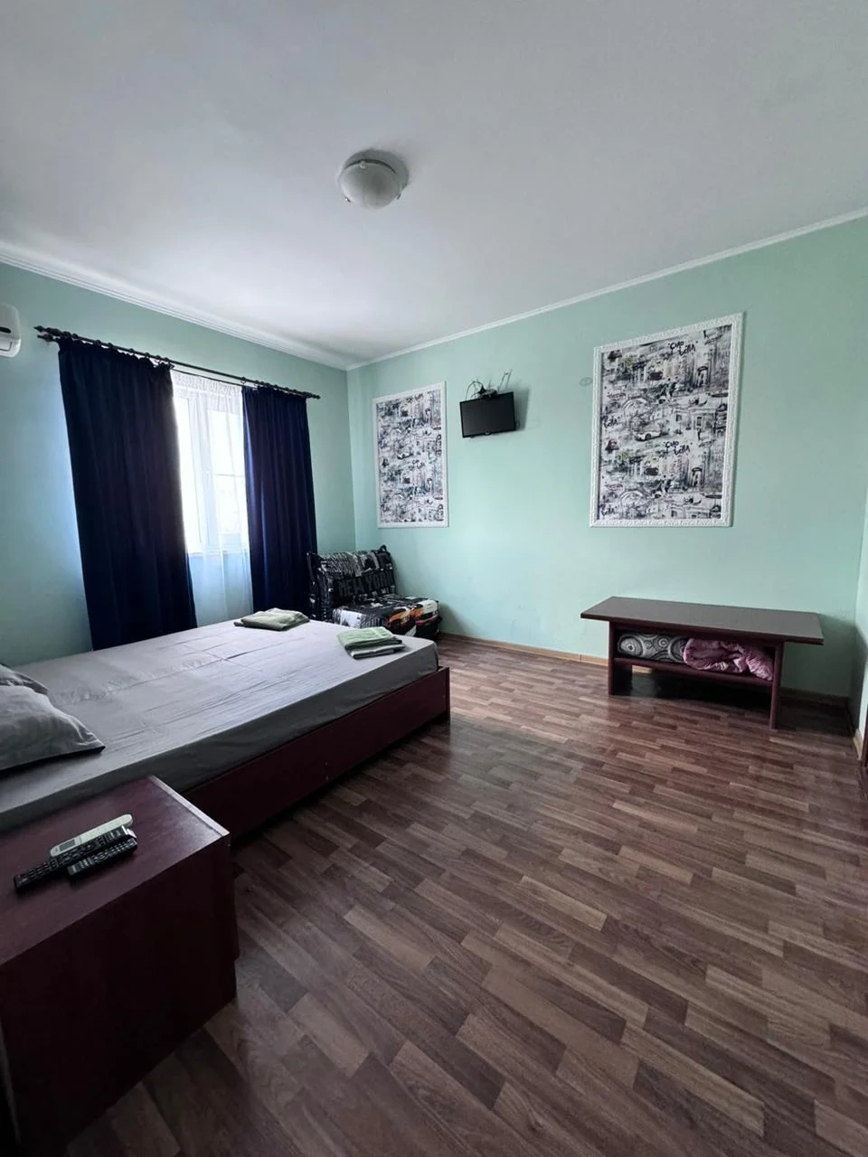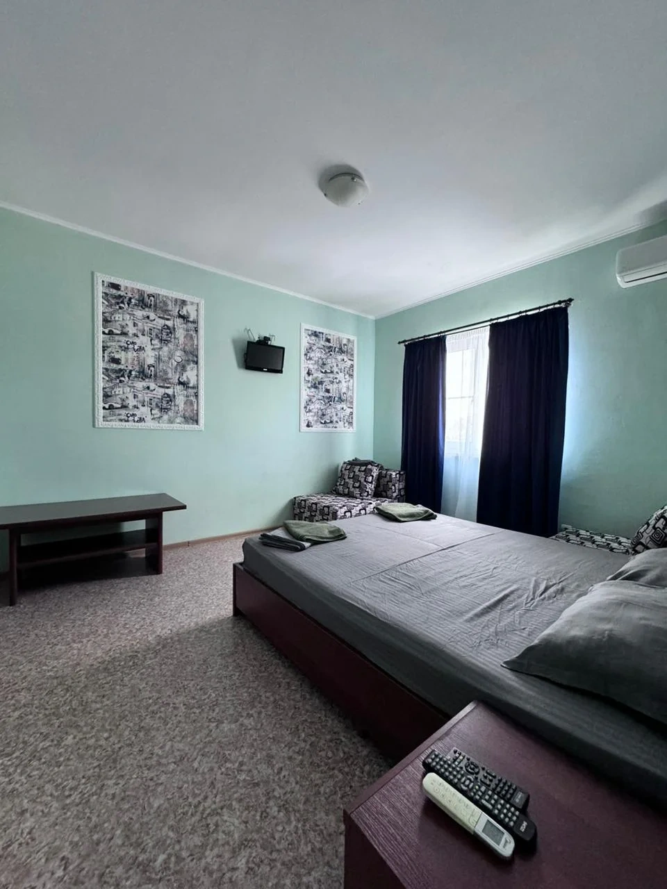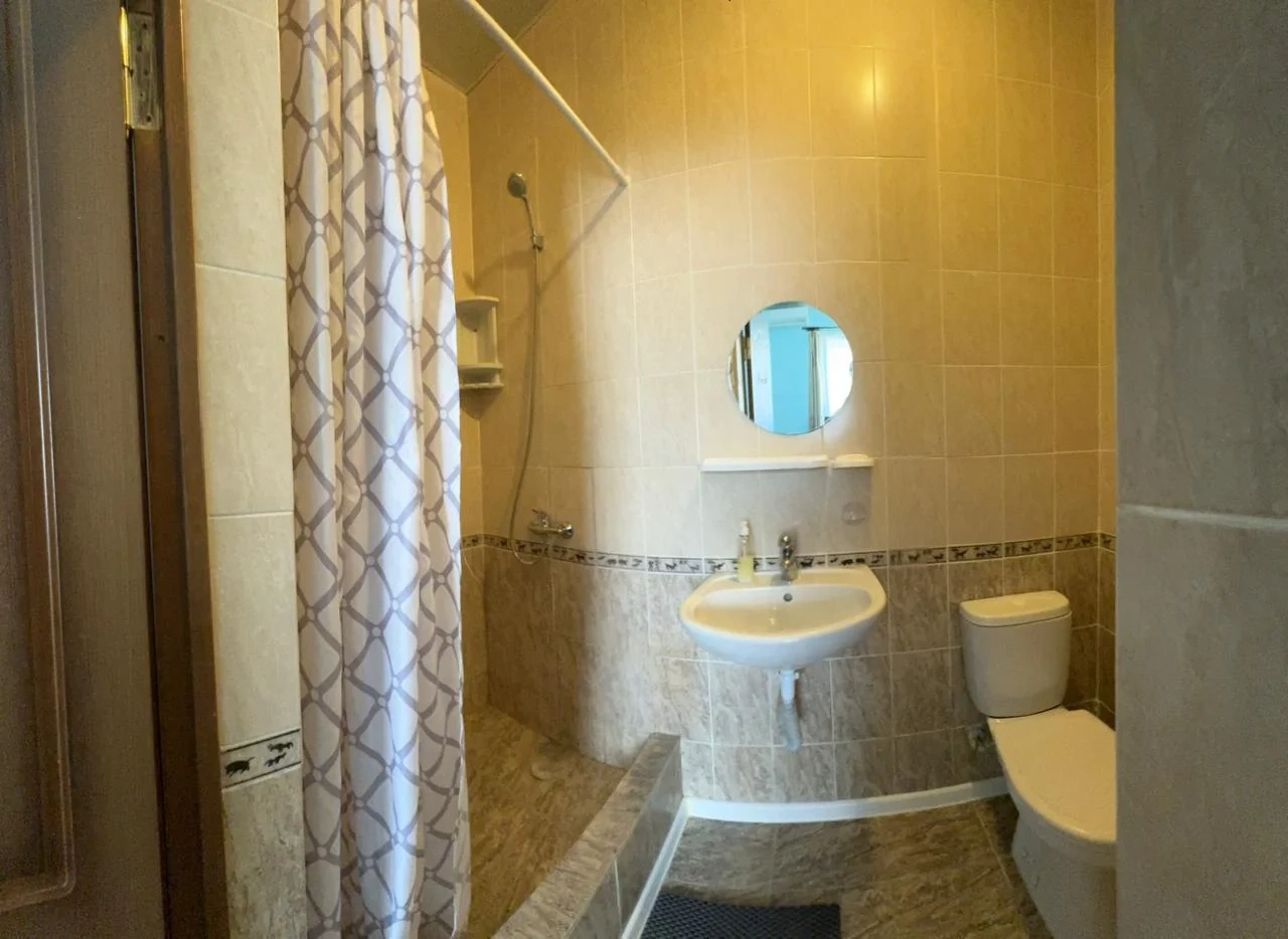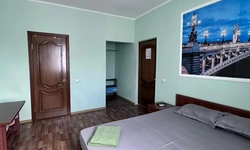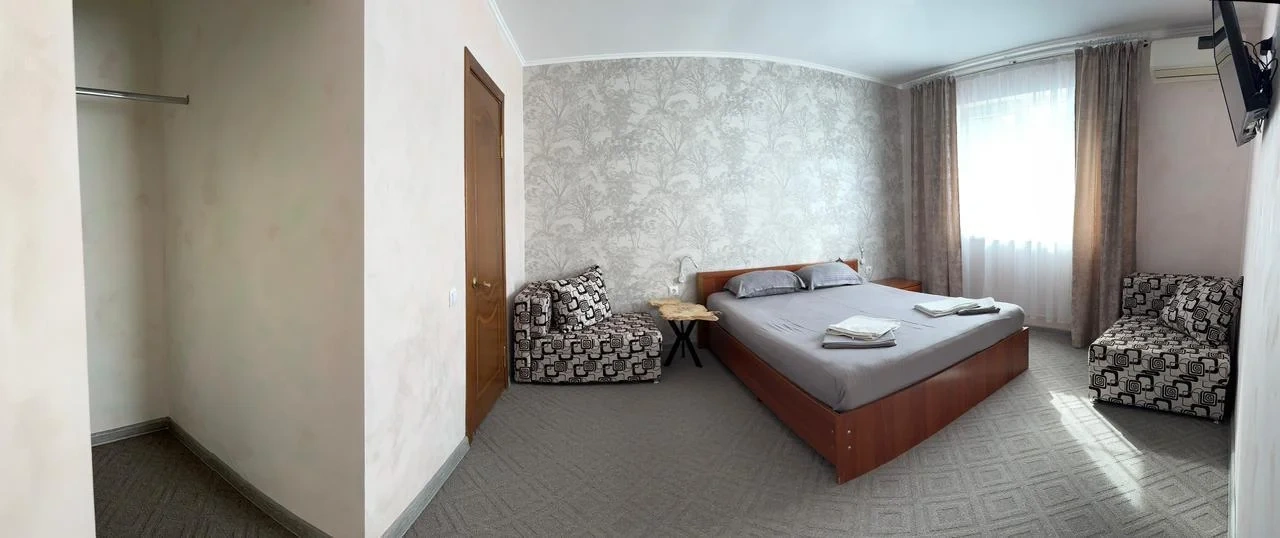 У нас в гостевом доме предлагается двухместный номер с двухспальной кроватью. В дополнение к этому, в номере имеется 2 кресло-кровати для дополнительного размещения гостей. В номере также есть кондиционер, холодильник, телевизор и Wi-Fi для вашего комфорта и развлечения. Ванная комната оснащена душем, туалетом и раковиной, а также в номере есть кондиционер, чтобы обеспечить свежесть в жаркую погоду. На территории нашего гостевого дома есть бесплатная парковка для удобства наших гостей, а также мангальная зона, где вы можете приготовить шашлык и насладиться вкусом на открытом воздухе. Остановка общественного транспорта, аптека и супермаркет находятся всего в 150 метрах от гостевого дома, что делает ваше пребывание у нас еще более удобным. Мы будем рады приветствовать вас в нашем гостевом доме и сделать ваше пребывание здесь приятным и комфортным.