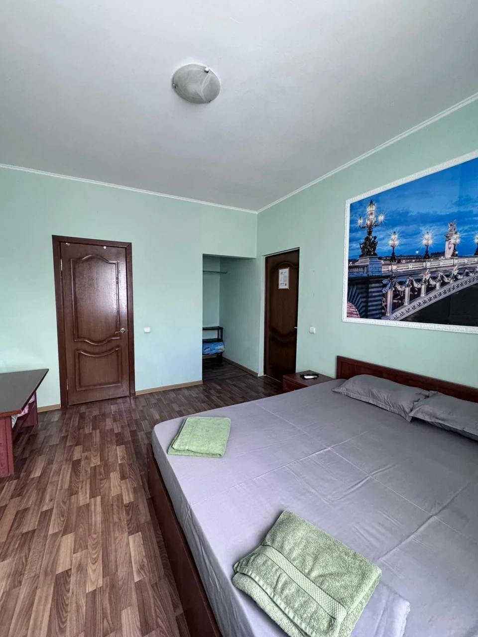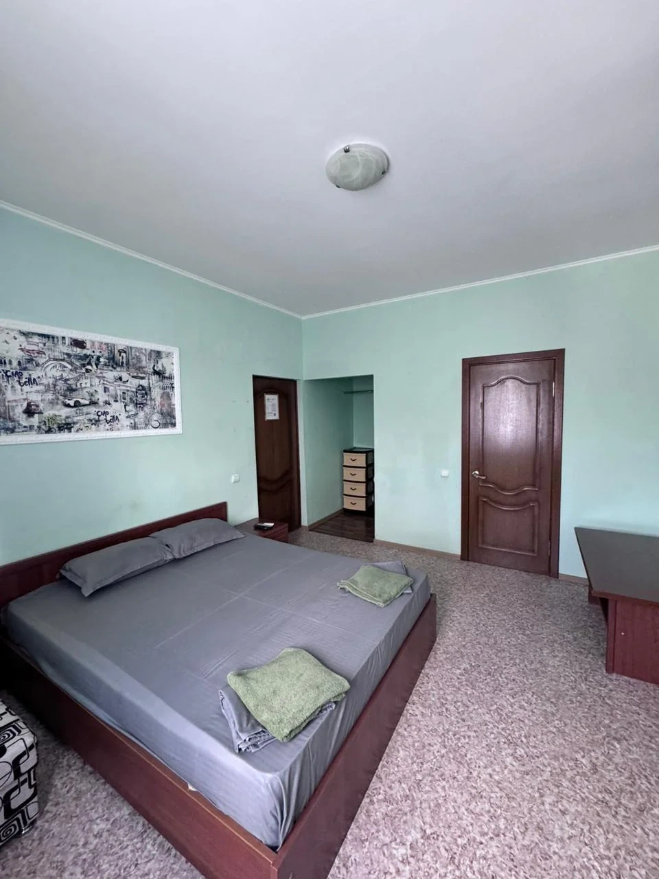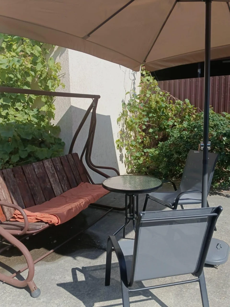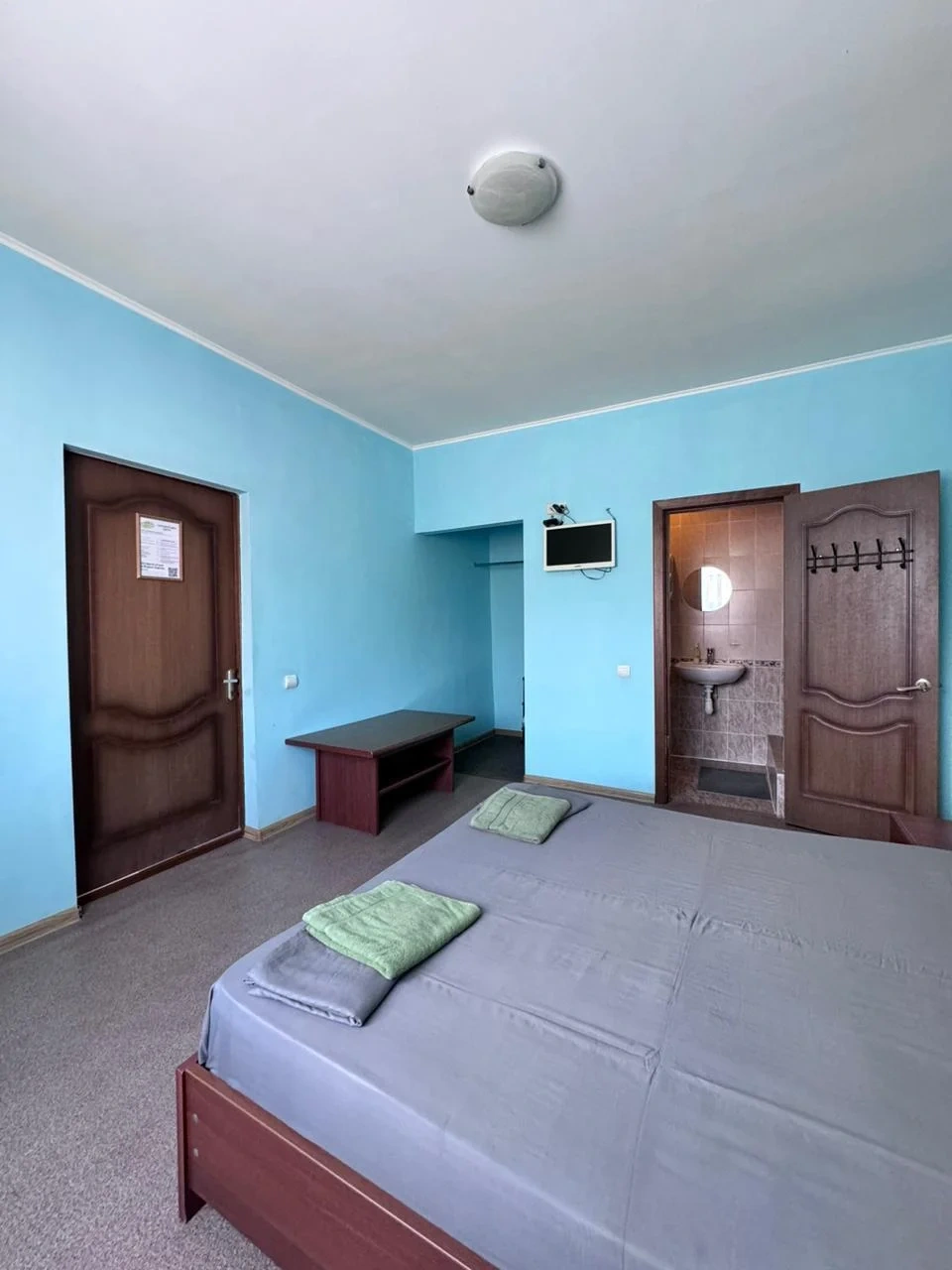 У нас в гостевом доме предлагается двухместный номер с двухспальной кроватью. В дополнение к этому, в номере имеется 2 кресло-кровати для дополнительного размещения гостей. В номере также есть кондиционер, холодильник, телевизор и Wi-Fi для вашего комфорта и развлечения. Ванная комната оснащена душем, туалетом и раковиной, а также в номере есть кондиционер, чтобы обеспечить свежесть в жаркую погоду. На территории нашего гостевого дома есть бесплатная парковка для удобства наших гостей, а также мангальная зона, где вы можете приготовить шашлык и насладиться вкусом на открытом воздухе. Остановка общественного транспорта, аптека и супермаркет находятся всего в 150 метрах от гостевого дома, что делает ваше пребывание у нас еще более удобным. Мы будем рады приветствовать вас в нашем гостевом доме и сделать ваше пребывание здесь приятным и комфортным.