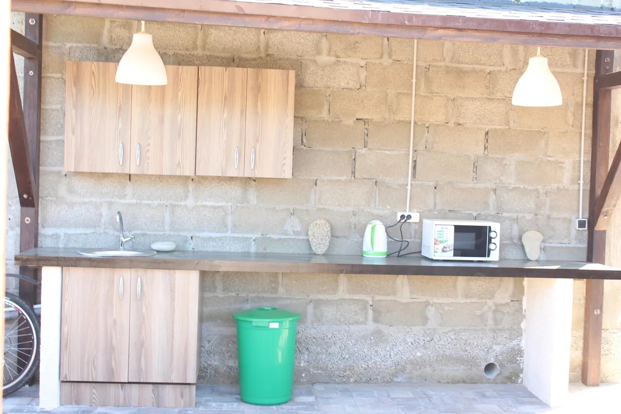 У нас есть бесплатная парковка для наших гостей и общая кухня, в которой есть все необходимое для приготовления и приема пищи, для каждого номера собственный холодильник. Также вы можете воспользоваться мангальной зоной и приготовить шашлык на свежем воздухе.