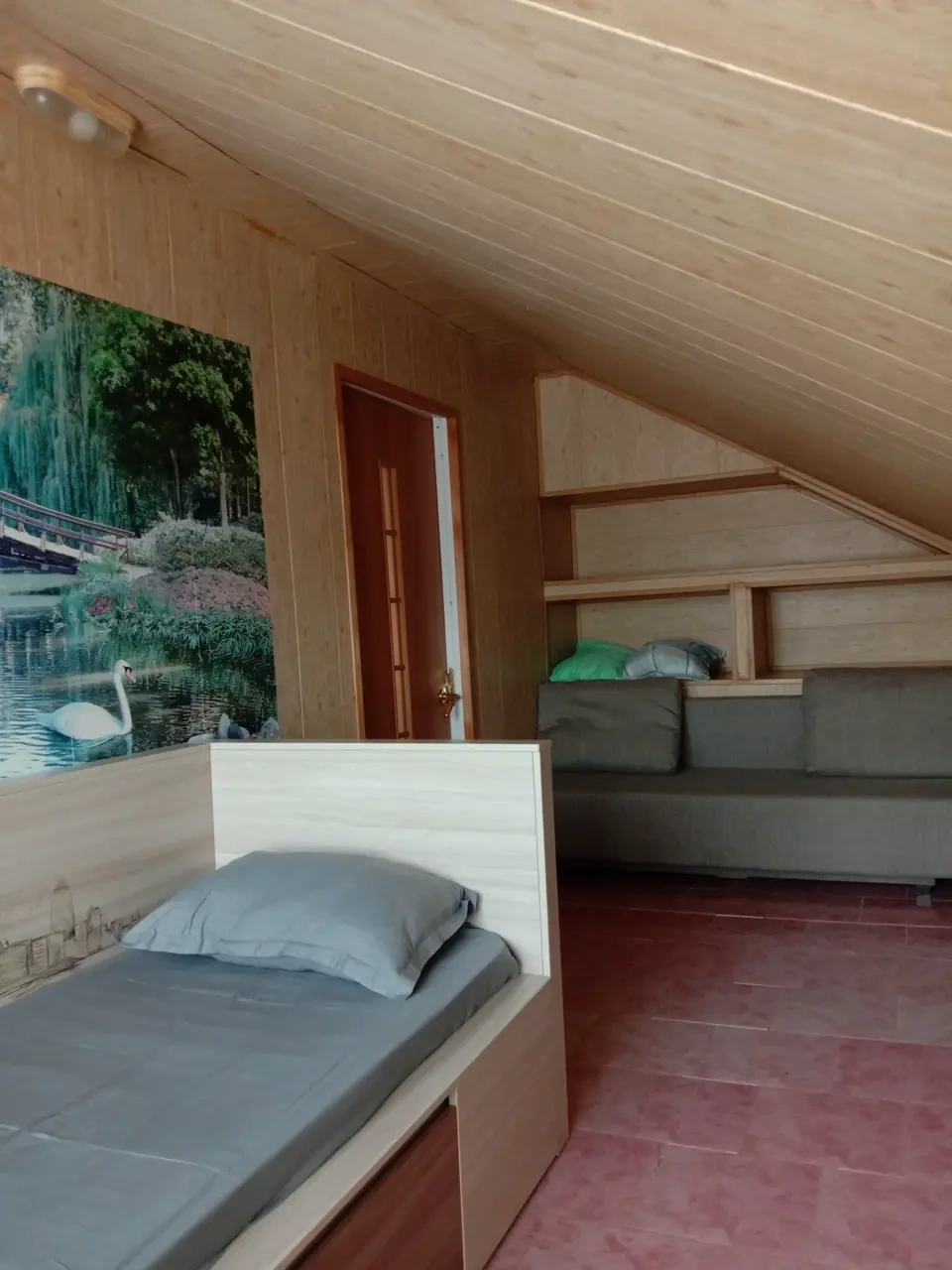 Мансардный этаж в гостевом доме "УДача" представляет собой просторное помещение площадью более 60 квадратных метров, где гости могут комфортно разместиться. В номере есть кондиционер, а также полноценная ванная комната с туалетом, раковиной, ванной, стиральной машинкой, сушилкой для белья, гладильной доской и утюгом. Гости могут пользоваться бесплатным Wi-Fi. Первая большая комната оборудована двуспальной кроватью, двуспальным диваном, креслом-кроватью от IKEA, телевизором, чайником и холодильником. Вторая комната имеет двуспальный диван и односпальную кровать. На территории гостевого дома есть бесплатная парковка, а в 150 метрах от дома находятся остановка общественного транспорта, аптека, супермаркет и мангальная зона, где гости могут приготовить гриль или шашлык. Мансардный этаж в гостевом доме "УДача" – идеальный выбор для семей или групп друзей, которые хотят комфортно отдохнуть в уютной обстановке и насладиться природой Южной Озереевки. Добро пожаловать!