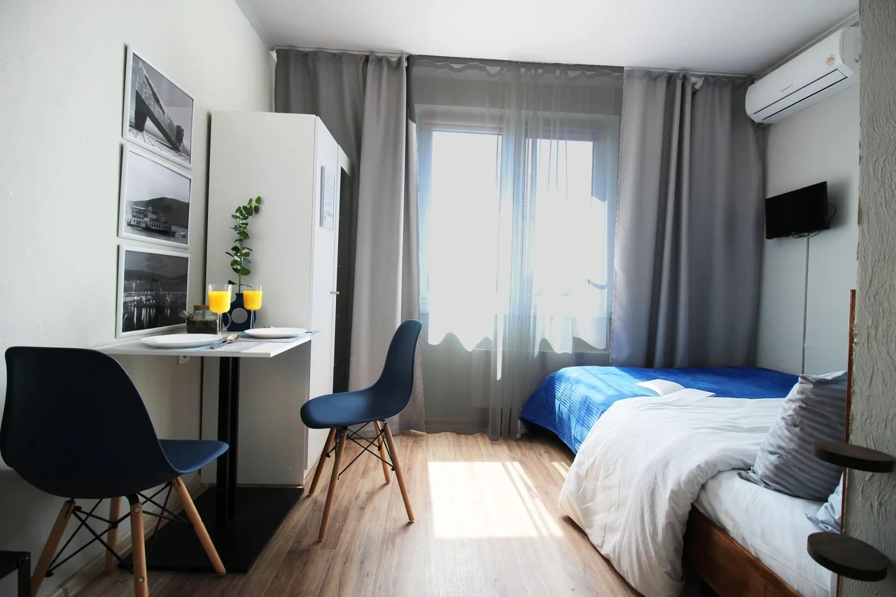 Студия 14 кв.м на первом этаже. Рядом удобная транспортная развязка, ост.транспорта , спортивный комплекс,южный рынок и магазин "Магнит" и "Лента". В подъезде, лифте , на этажах ведется видеонаблюдение. В студии есть все удобства для уютного проживания: посуда,микроволновка, электрочайник, стиральная машина, высокоскоростной интернет, цифровое телевидение ,двуспальная кровать с шикарным ортопедическим матрасом .Отчетные документы . Ждем Вас в гости !!! Цена зависит от : срока проживания, количества человек , выходных и праздничных дней .. До моря 10 минут пешком.