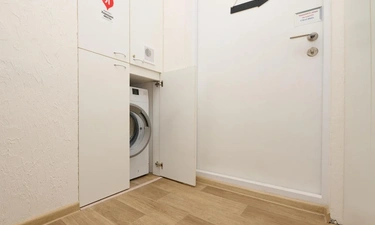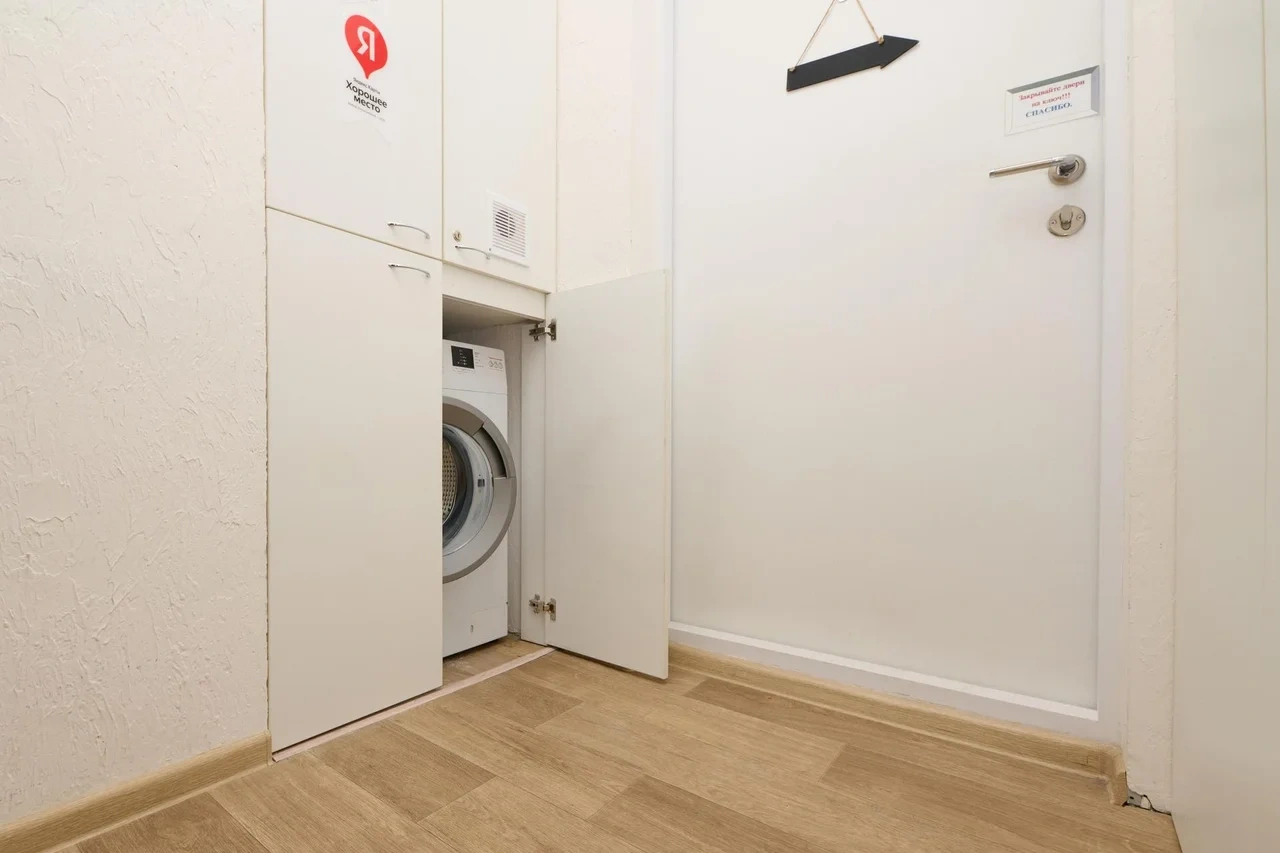 Полный набор принадлежностей : микроволновка, электрочайник, стиральная машинка, жидкое мыло, фен , туалетная бумага и много нужных мелочей!