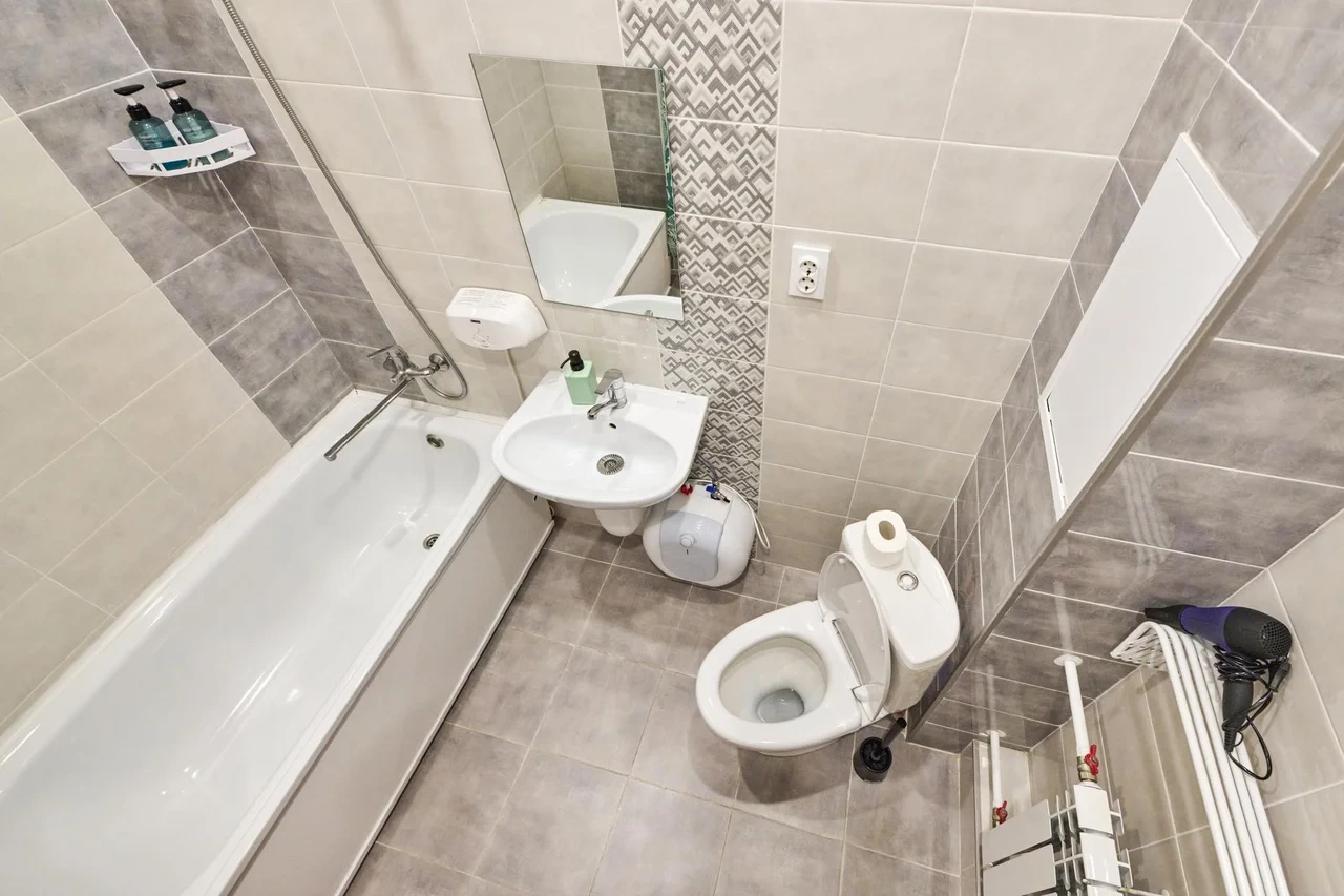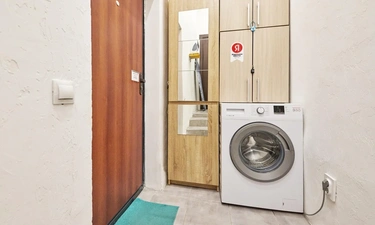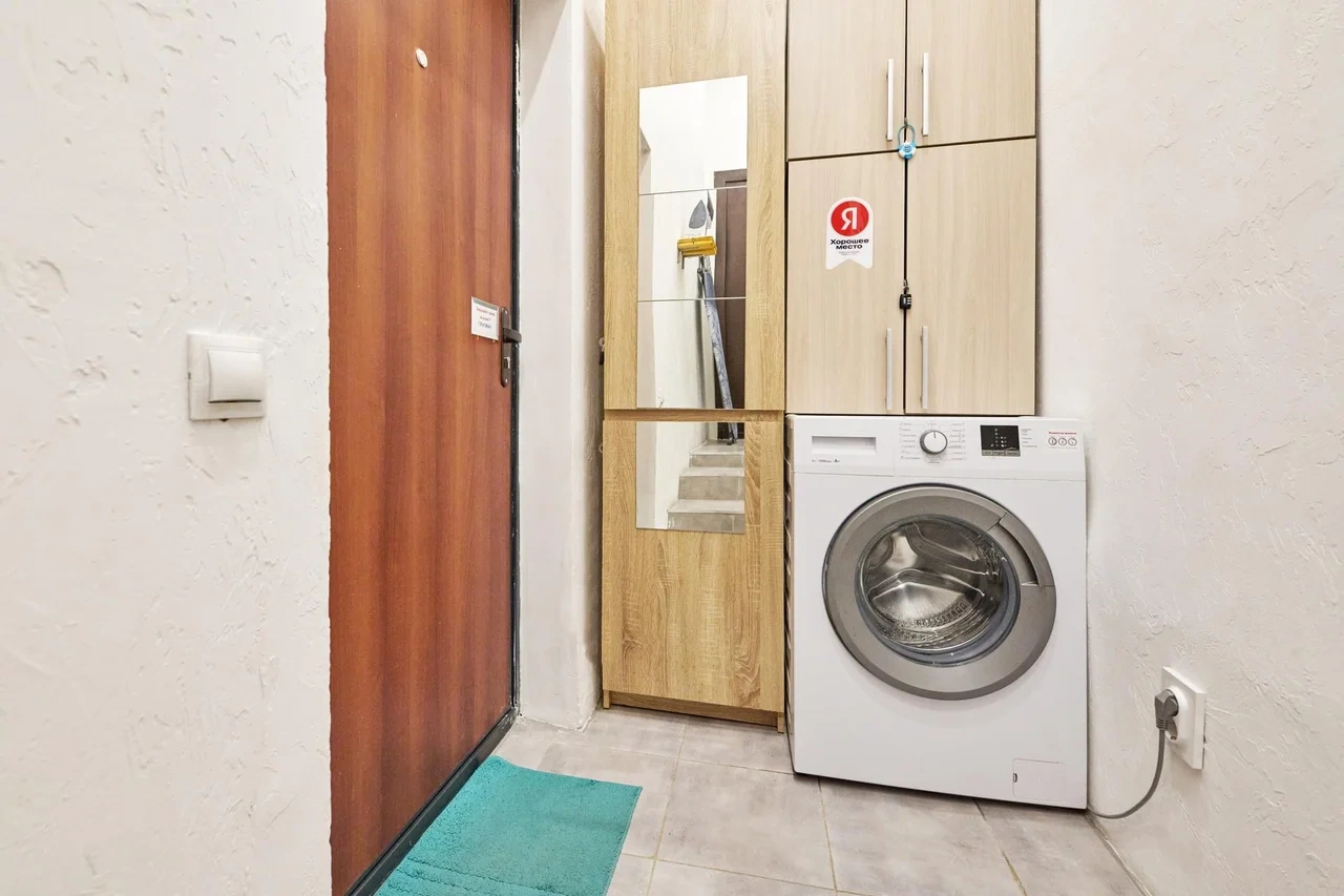Полный набор принадлежностей : микроволновка, электрочайник, стиральная машинка, жидкое мыло, фен , туалетная бумага и много нужных мелочей!