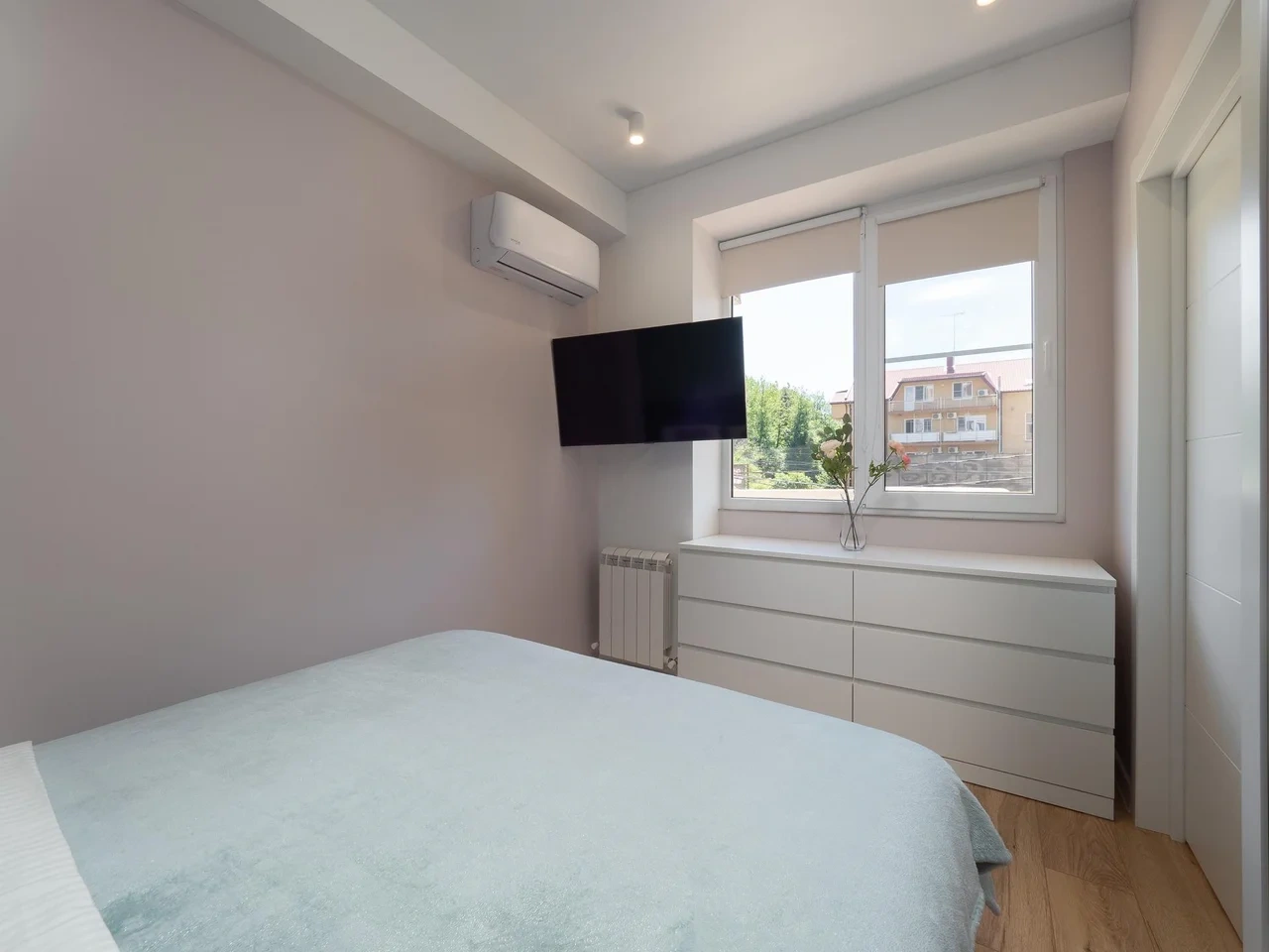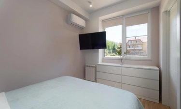 Двуспальная кровать с удобным ортопедическим матрасом, раскладывающийся диван с ортопедическим основанием, раскладывающееся кресло, телевизор, кондиционер, гладильная доска, утюг, пылесос, сушилка, скоростной Wifi.
