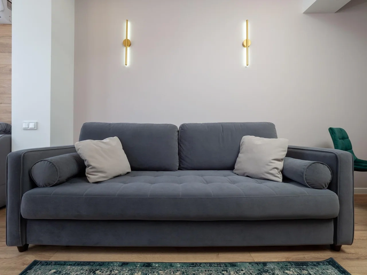 Проживали семьёй с тремя детьми, в квартире есть всё: шампуни, мыло, много полотенец, одноразовые наборы для гигиены, одноразовые тапки, валик для чистки одежды, утюг, фен, исправно работает микроволновка, чайник, машинка и тп. Диван и кровать удобные, постельное не синтетика, приятная ткань. Плотные шторы. Никакого шума самолетов мы не слышали, как многие писали.