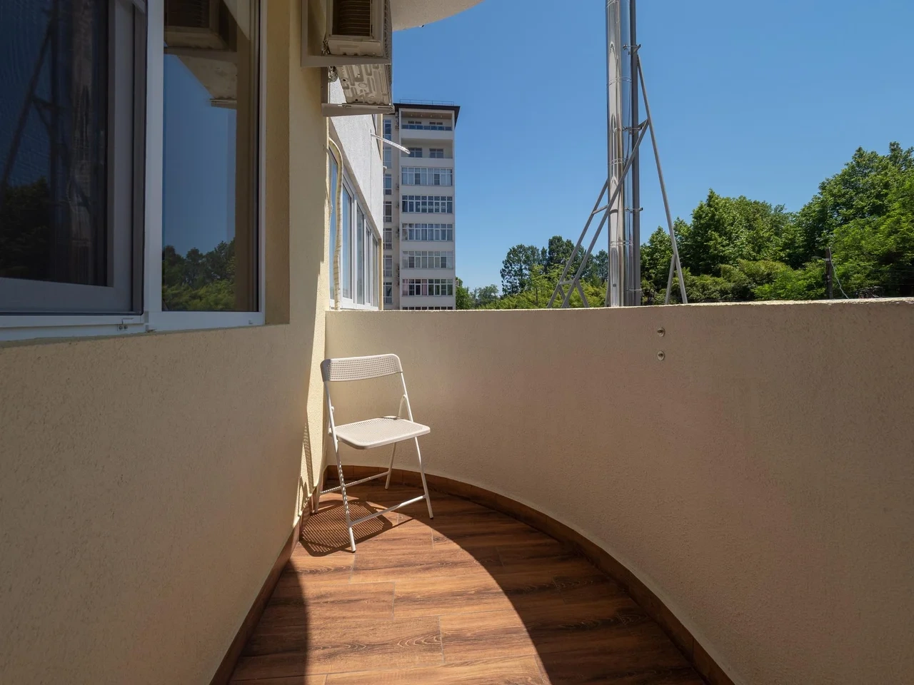Отличные апарты недалеко от моря, при этом через мостик вся тусовка, а на стороне апартаментов парк.