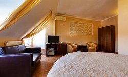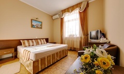 Укомплектованные всем необходимым, включая бесплатный беспроводной интернет, сплит-систему и мини - бар, 29 гостиничных номеров категории «Бизнес-класс», ждут вас круглосуточно. Снять напряжение и усталость вам поможет комфортабельная сауна с бассейном, TV, аудио-, видеоаппаратурой.