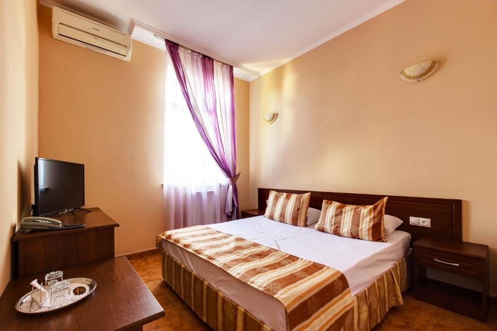 Бронировали полулюкс,зайдя в номер были немного разочарованы(,обычный эконом вариант! Окно выходило в частный двор,в котором постоянно лаяли собаки,в самом номере было много всяких мошек,которые были в кроватях,москитная сетка не помогала,кондиционер не могли включить,так как при любом поднятии распределителя воздуха дуло на нас( в ванне стояла кабинка у которой была сломана 1 дверца, и был только душ,который разбрызгивался в разные стороны и чтобы нормально помыться,нужно было потратить кучу времени!