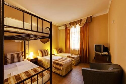 Матрас в меру мягкий. Постельное белье тщательно выстирано. Есть телевизор и минибар (не холодильник).