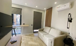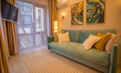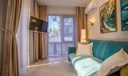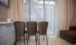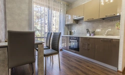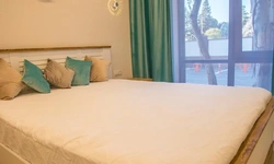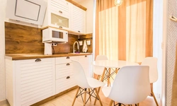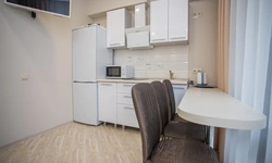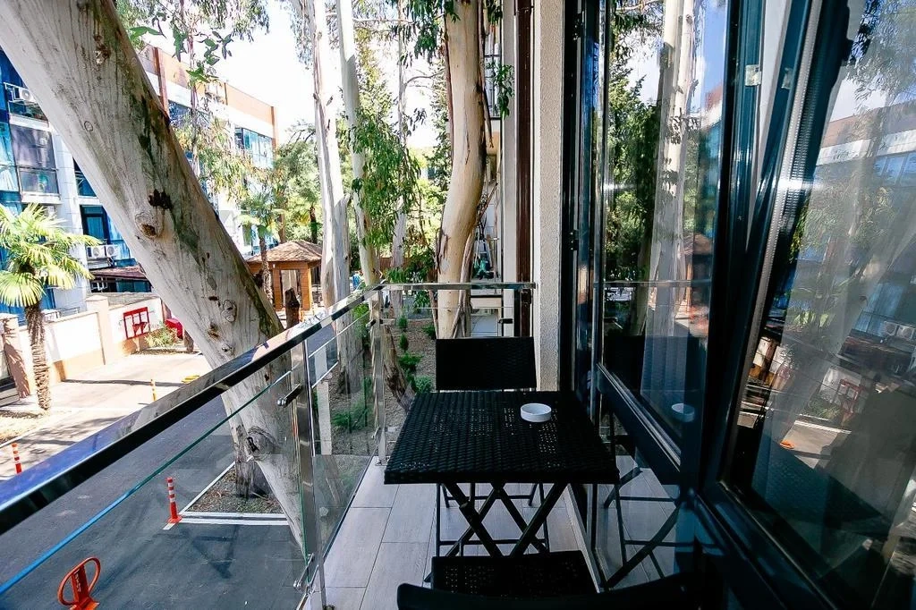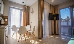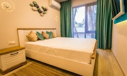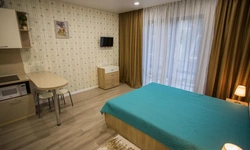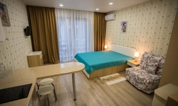 Номер полностью соответствует фото. Новая мебель. Чисто. Есть кухня и необходмая посуда, все в отличном состоянии, можно готовить. В санузле есть стиральная машинка, что очень удобно))) балкончик приятный бонус, выходит на стену с балкончиками в соседском отеле, вида нет, но в целом посидеть - норм.