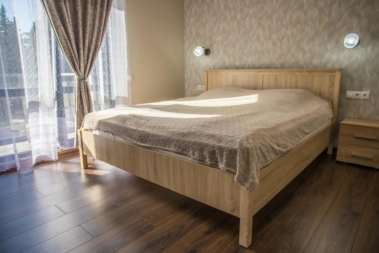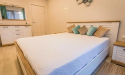 Кровать большая , матрас ортопедический , белье новое . Есть вся техника и посуда .