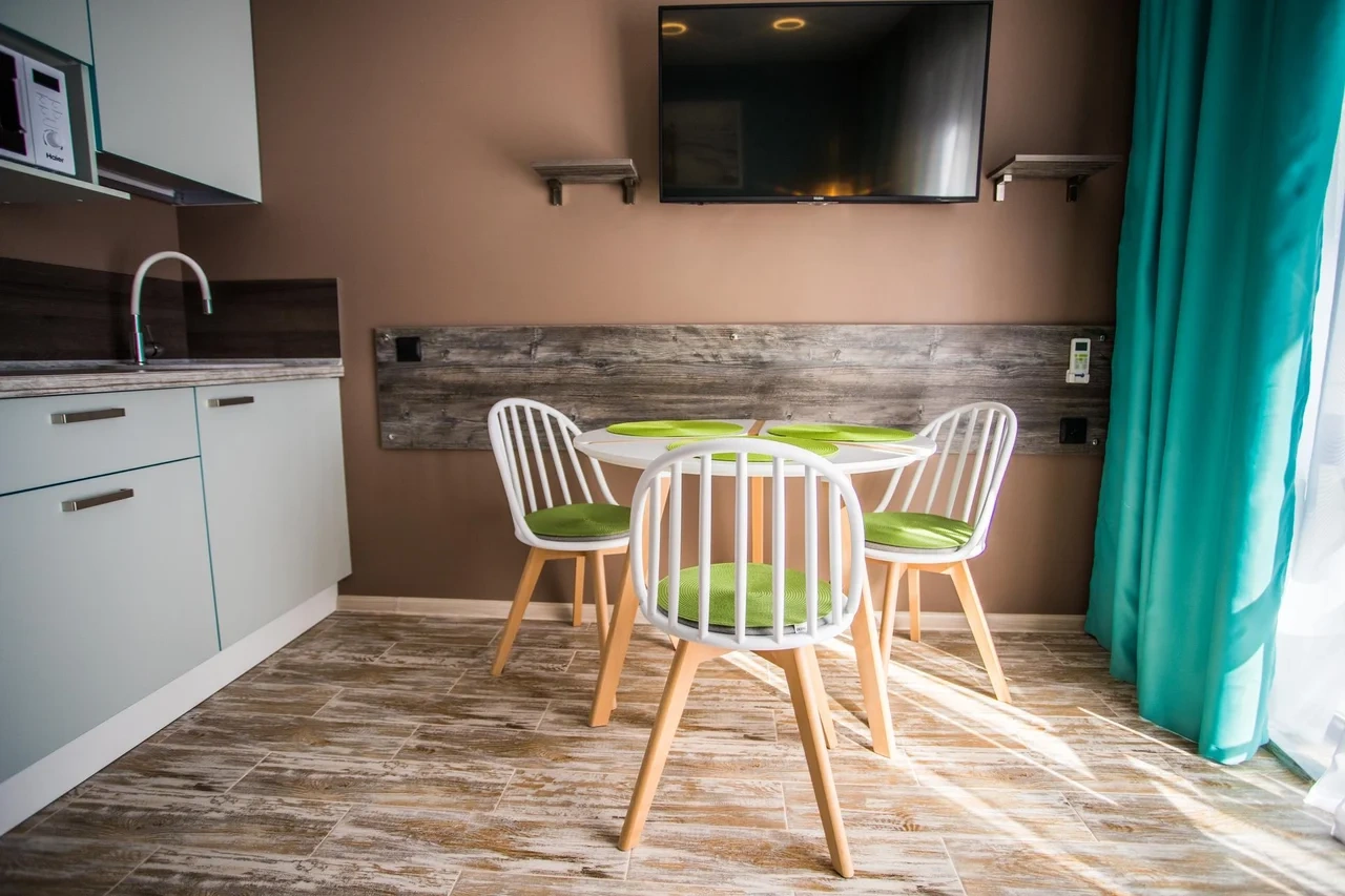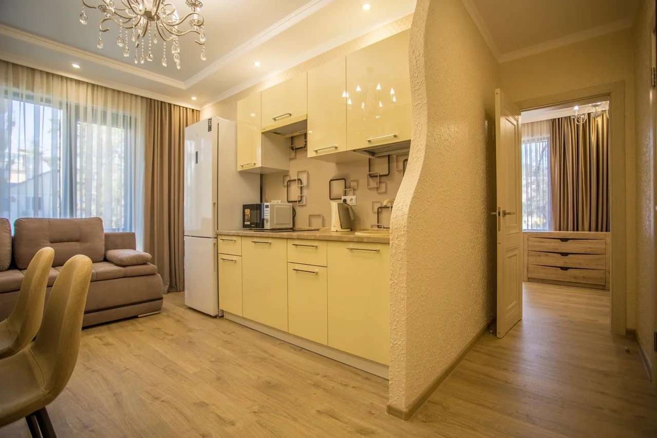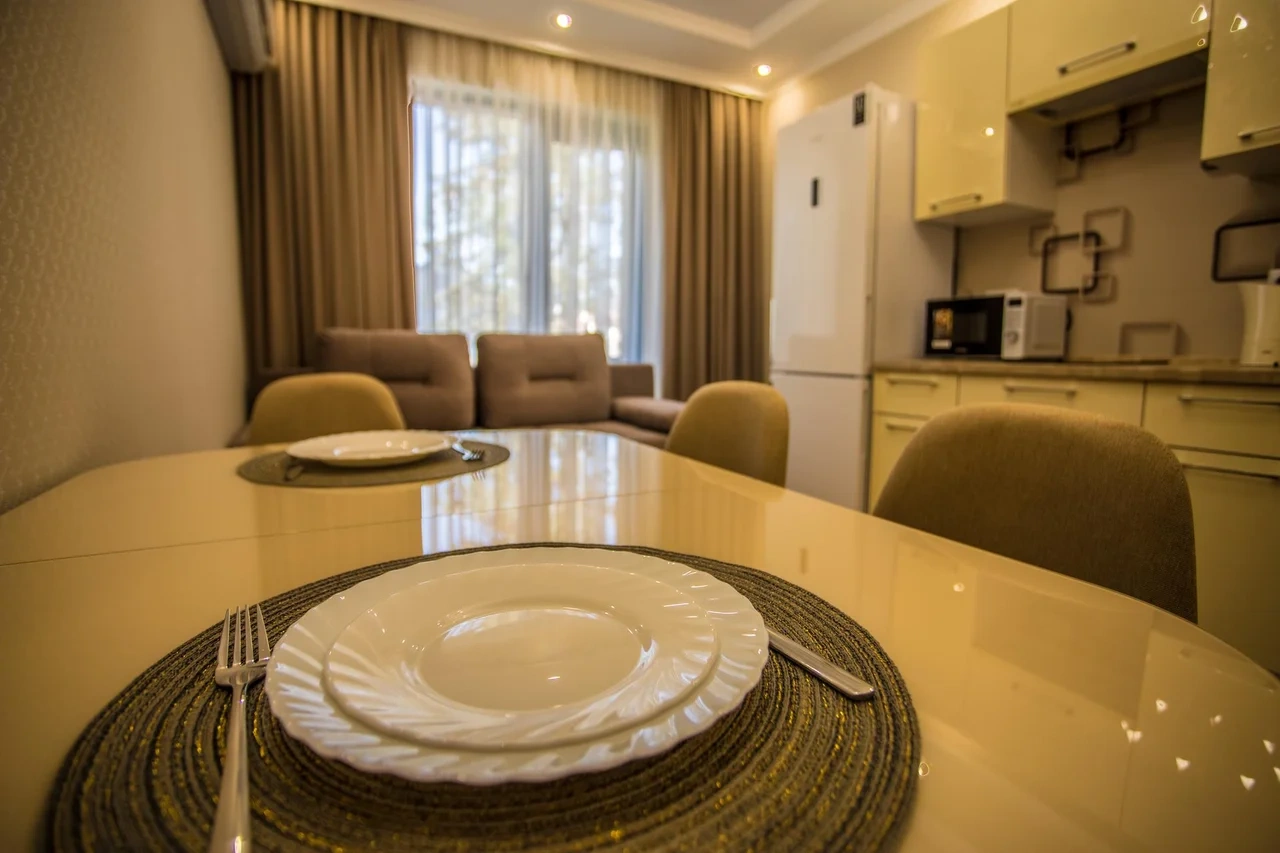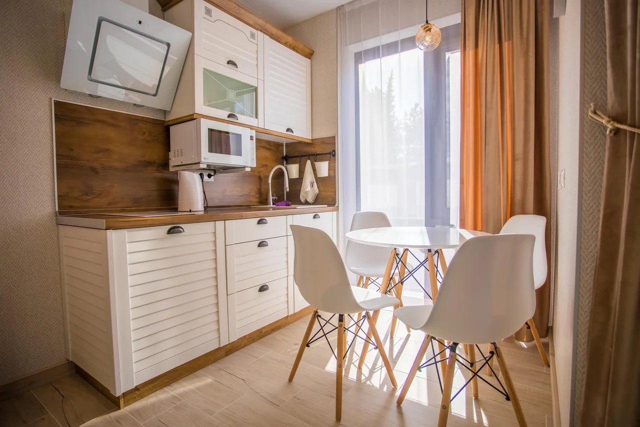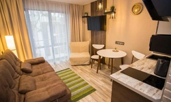 К услугам гостей предложены номера-апартаменты различных категорий и разнообразного дизайнерского исполнения, укомплектованные бытовой техникой и посудой.