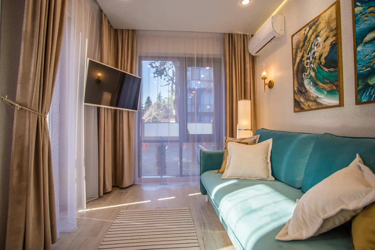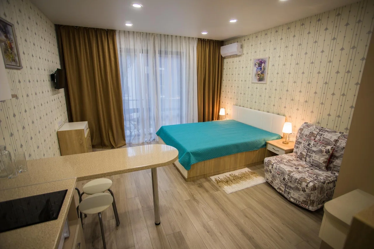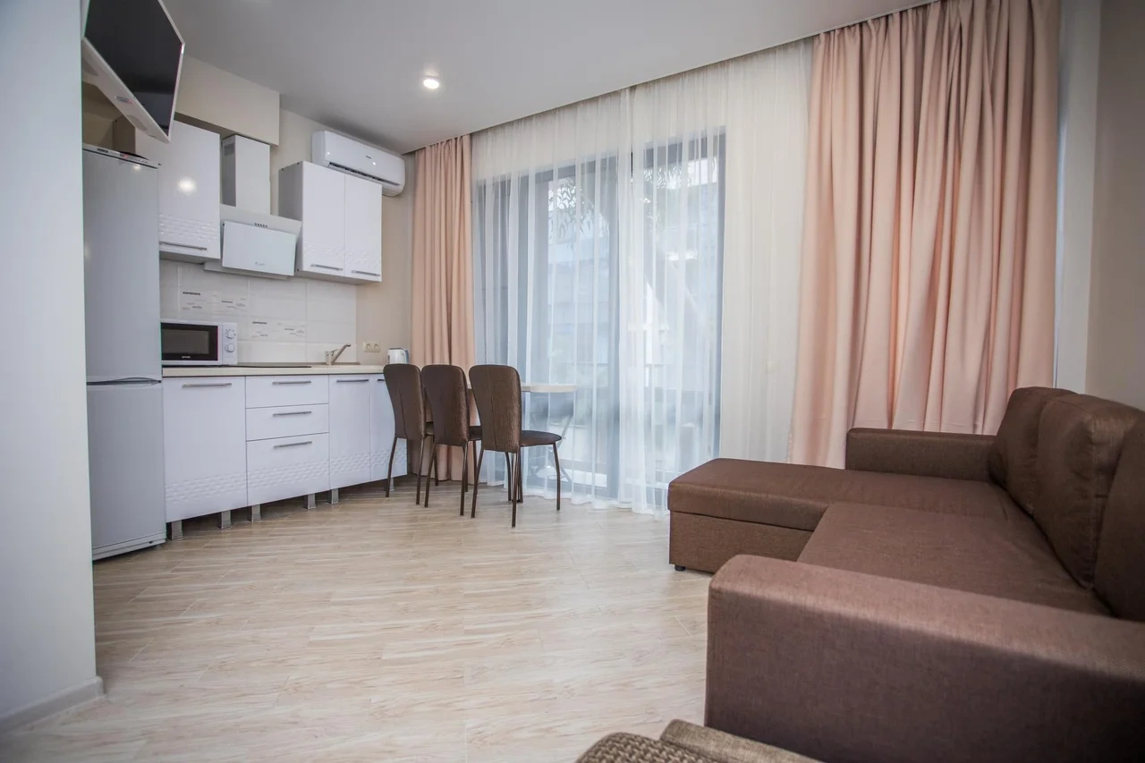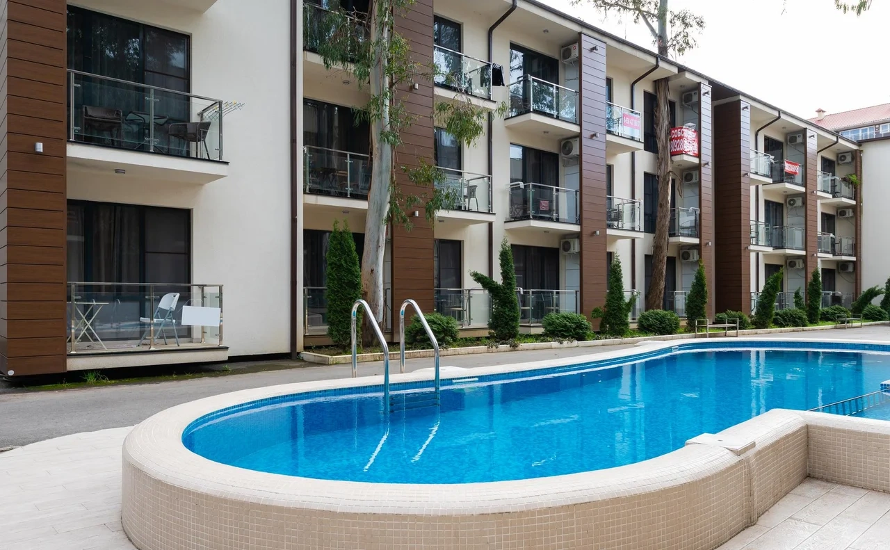 Отличный отель , тихо, уютно , а главное чисто! Территория ухоженная , есть бассейн и Детская площадка , рядом с отелем небольшой парк и набережная . Предоставиляют кроватку для ребёнка . Около отеля хорошая кофейня . С вай фаем проблем не было . Номер оборудован всем необходимым , посуда , микроволновка , чайник и стиральная машина . Белье новое . Мне очень всё понравилось , рекомендую .