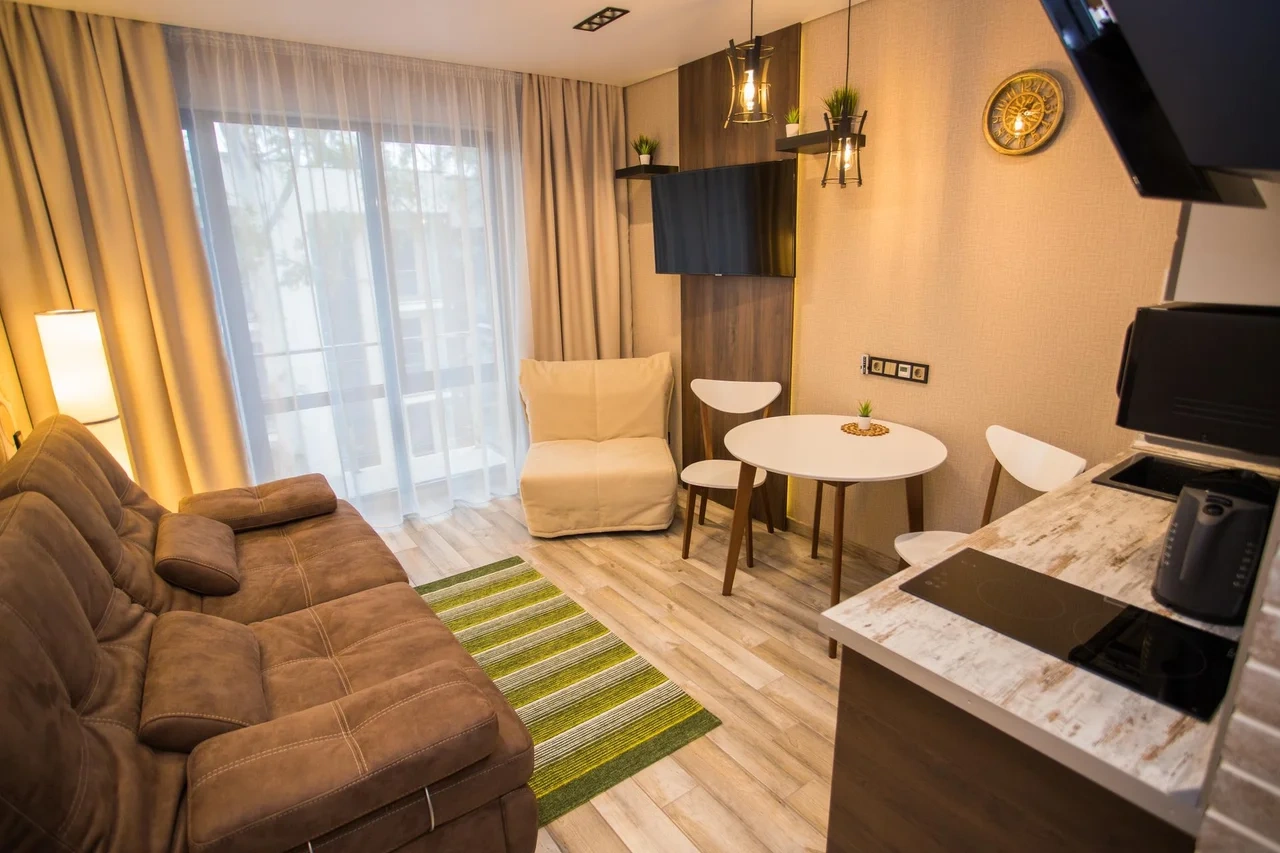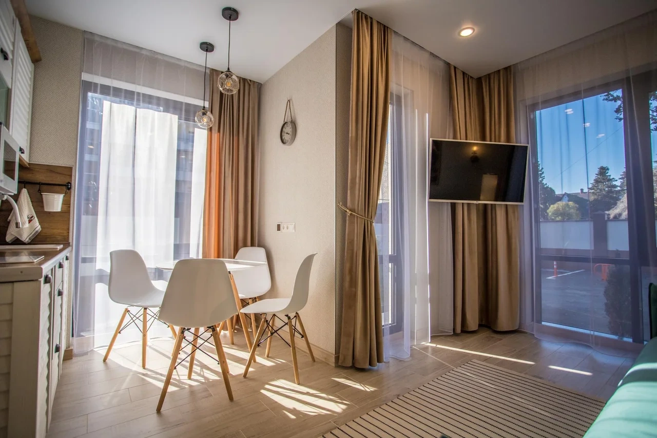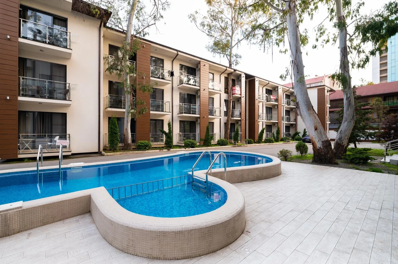 Отличный отель , тихо, уютно , а главное чисто! Территория ухоженная , есть бассейн и Детская площадка , рядом с отелем небольшой парк и набережная . Предоставиляют кроватку для ребёнка . Около отеля хорошая кофейня . С вай фаем проблем не было . Номер оборудован всем необходимым , посуда , микроволновка , чайник и стиральная машина . Белье новое . Мне очень всё понравилось , рекомендую .