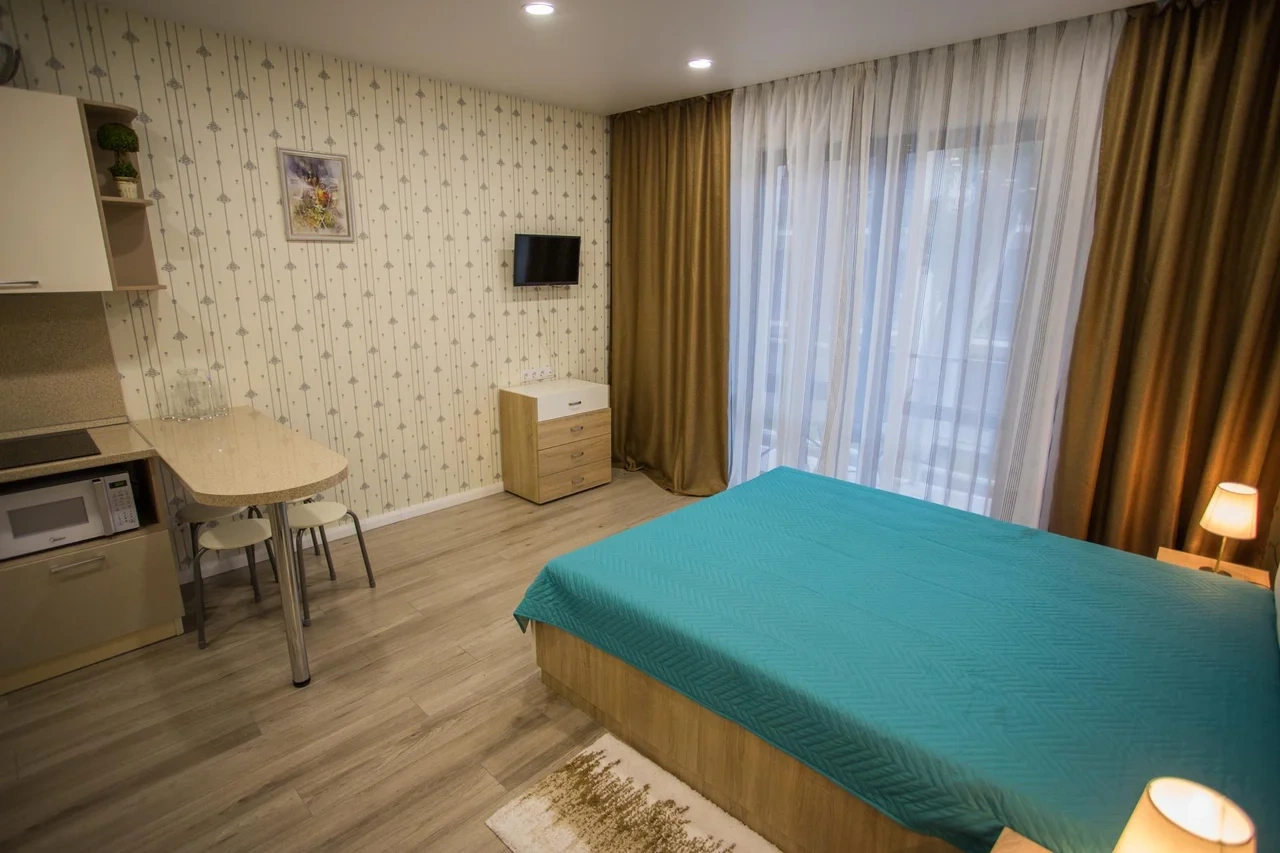 Да все хорошо в принципе, номер чистый, кухня и все что нужно для нее - есть. Телевизор (хоть и тоомознутый) есть, сантехника неплохая. Учитывая цену так вообще прелесть в не апартаменты. Единственное несколько далековато от центра. От отеля до набережной минут 7 на такси, а вечером если возвращаться - минут 40)