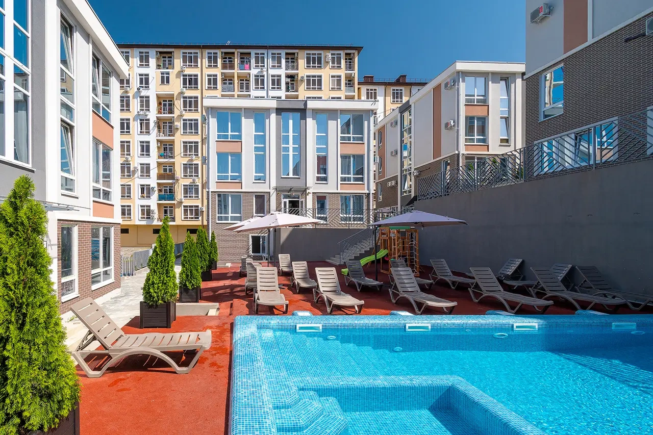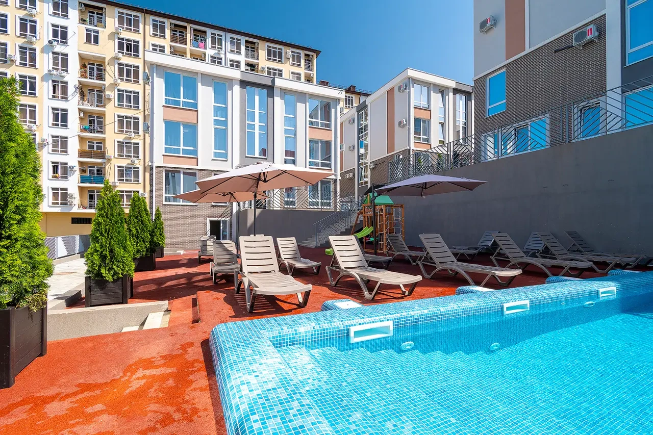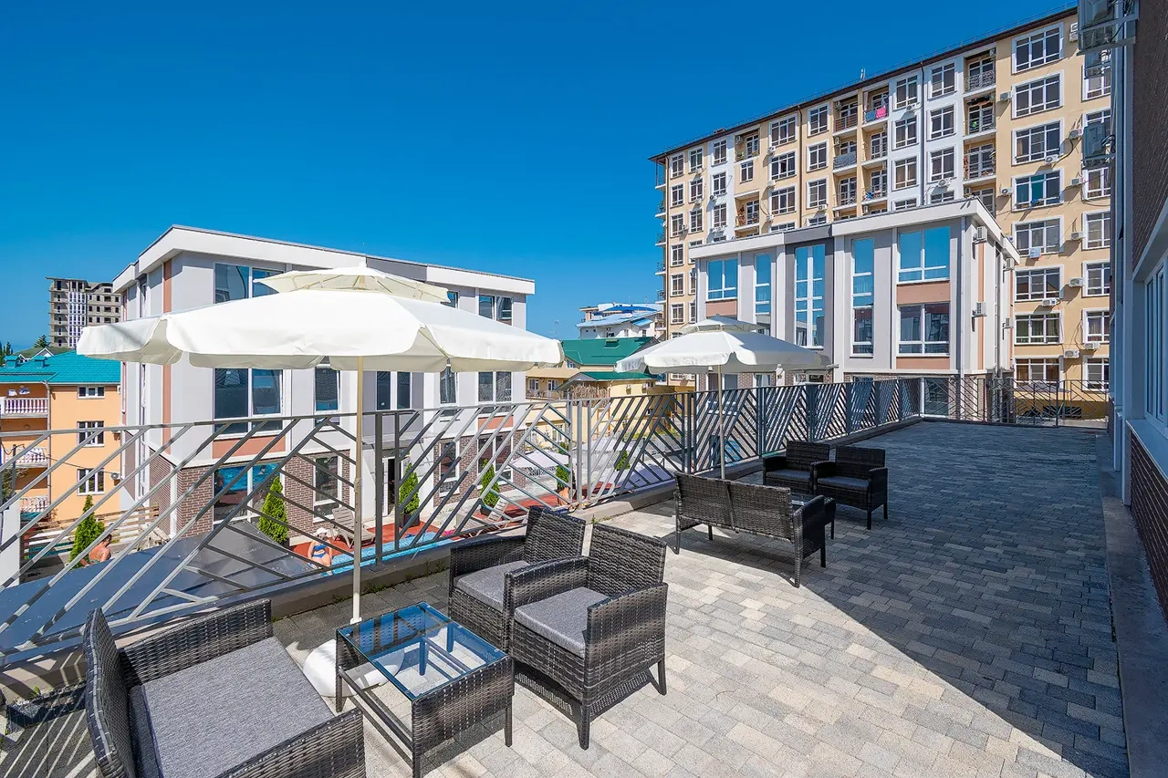На территории открытый подогреваемый бассейн с 9-23.00 всесезонно, также есть паркинг — при наличии предоставляется бесплатно. На территории есть кафе.