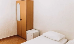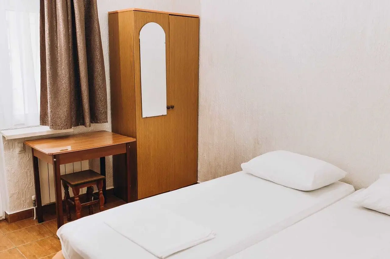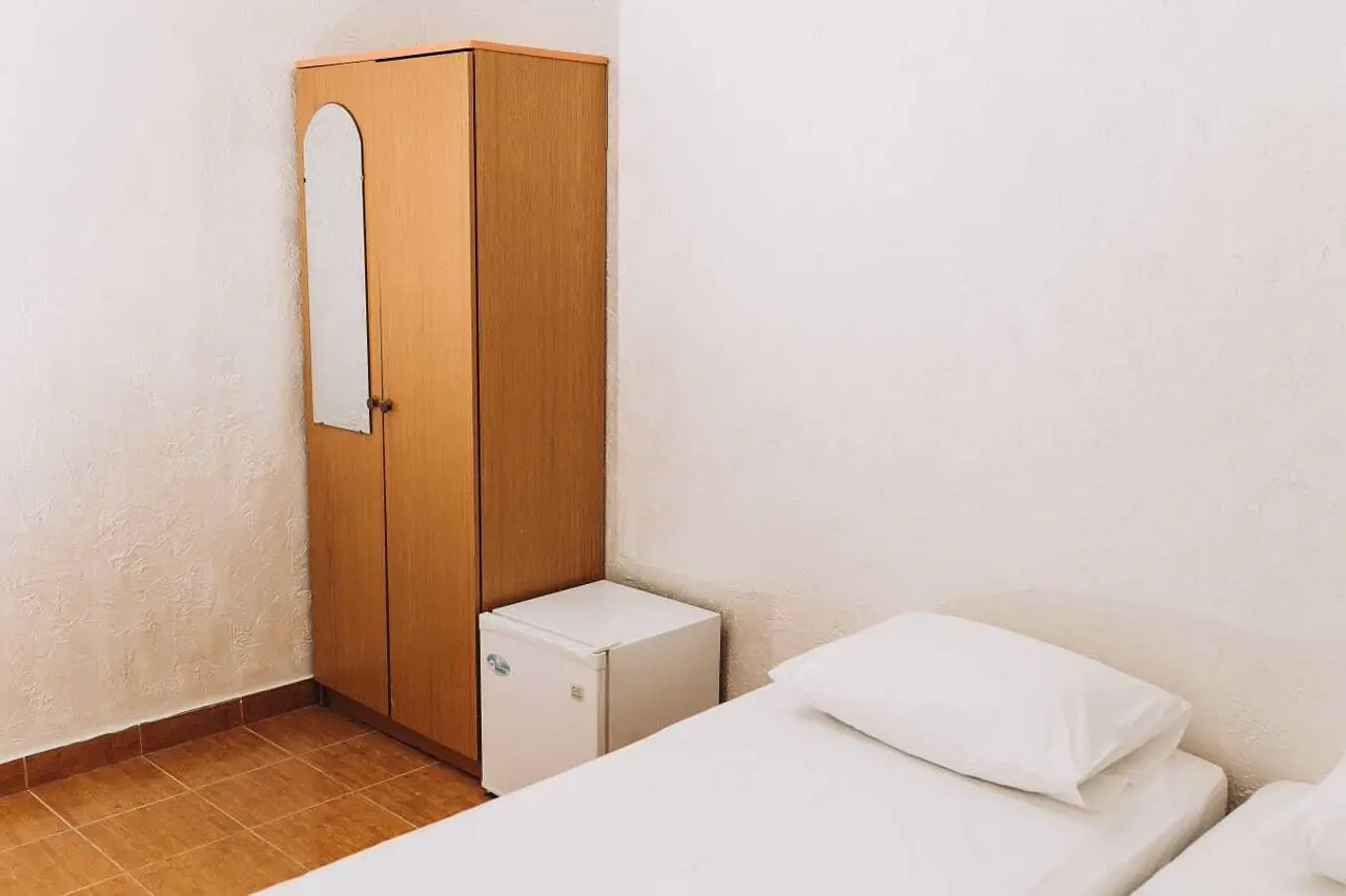 Номер категории "Эконом" - 1 комнатный 2-местный номер площадью 12-14 квадратных метра. !!!Санузел с душем находится на этаже (на 3 номера). Без балкона!!! Двух местные номера оборудованы двумя раздельными кроватями, прикроватной тумбочкой и шкафом для одежды, телевизором, а так же холодильником.