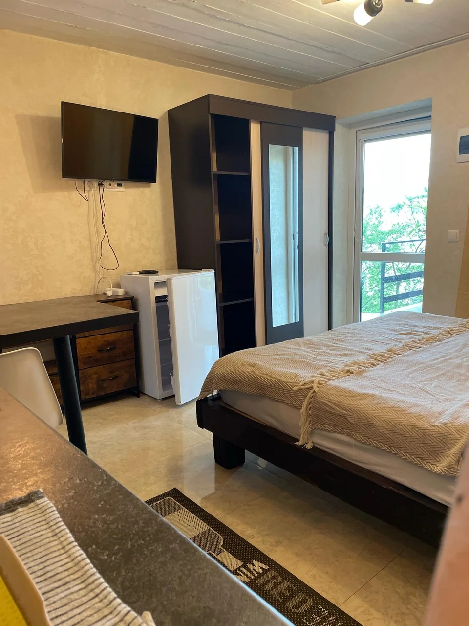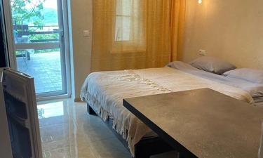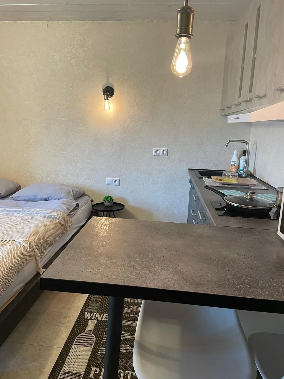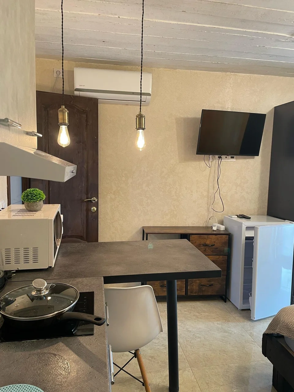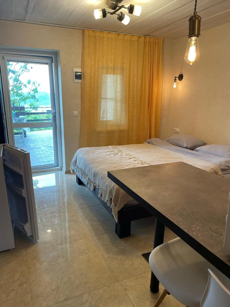 Квартира - студия , сдается в новом доме, с потрясающим видом на горы, вдали от городского шума и суеты, для тех , кто любит тишину и пение птиц • Для тех, кто любит заниматься по утрам йогой , хайкингком, посидеть на огромной террасе с бокалом шампанского и игристого вина с видом на луну и звезды, на город . Вы будете просыпаться под пение птиц. В квартире есть все необходимое, для проживания . Остановка около дома , 7 раз автобус едет по расписанию до моря и обратно ., продуктовый магазин в шаговой доступности. Доставка на дом продуктов . Парковка бесплатная во дворе, территория 15 соток сада с прудом и всеми фруктами к вашему столу. Бесплатный вай фай . В студии есть кондиционер , телевизор , холодильник , столовые приборы и посуда , микроволновка , фен , утюг , стиральная машина , гигиенические принадлежности , полотенца , тапочки и халаты