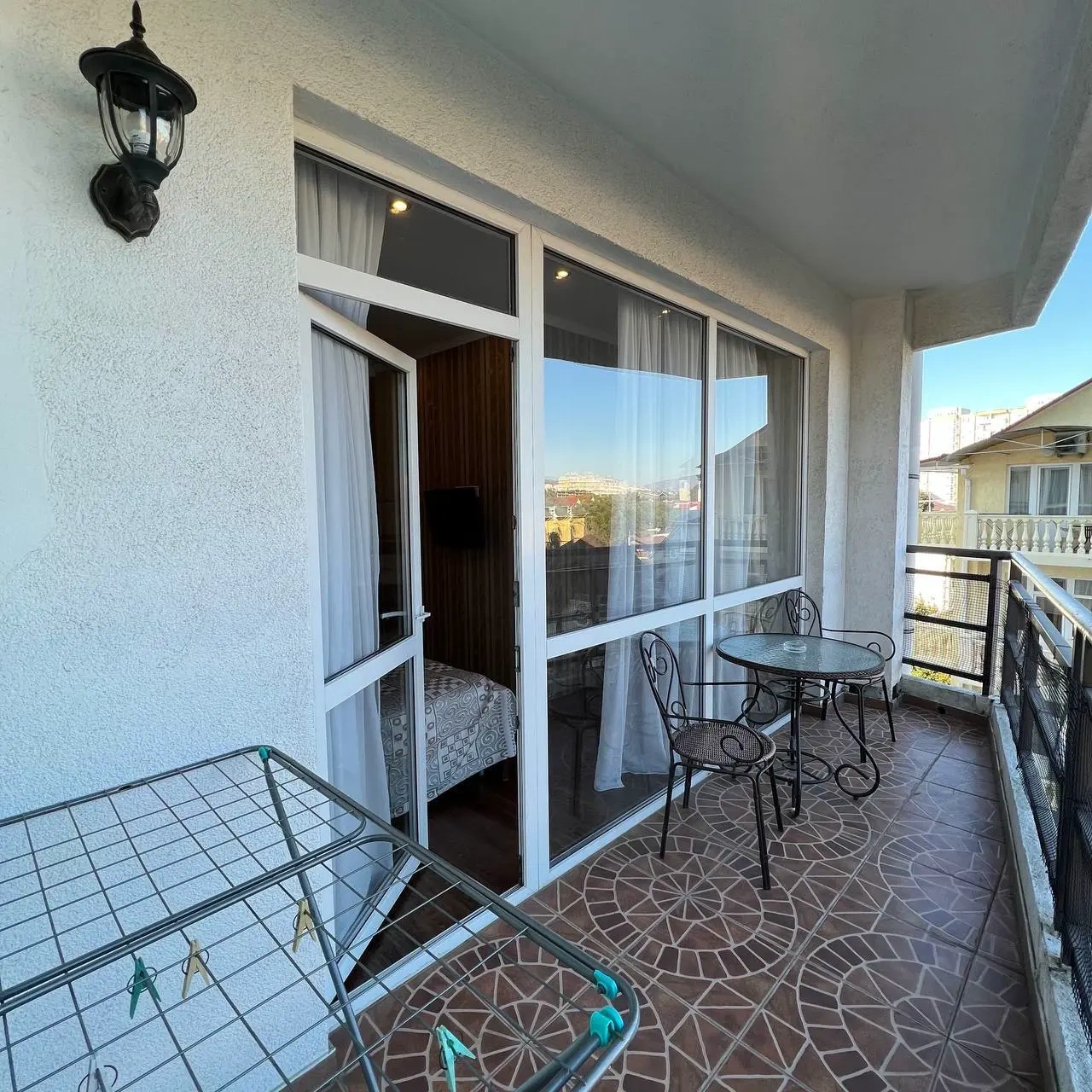 Специально оборудованные для отдыха семей с детьми жилые помещения в 150 м от пляжа и в получасе езды от горнолыжных курортов Красной Поляны. В вашем распоряжении — открытый балкон с видом на горы (с защитной сеткой для безопасности детей), спальня с двуспальной кроватью, в отдельной комнате -кухня- гостиная с раздвижным диваном и полностью оборудованной кухней, ванная комната с туалетом и душем, Wifi и кондиционер. В квартире также есть стиральная машина, утюг, гладильная доска. По запросу- предоставим детскую кроватку и стульчик для кормления. Так же, есть возможность поставить дополнительную односпальную кровать. Недалеко, в пешей доступности, находятся несколько супермаркетов, центральный рынок, два торгово-развлекательных центра, десятки кафе и ресторанов, SPA-центр в отеле Охотник (бассейн, сауна, хамам, тренажерный зал). Куренье в апартаментах разрешено только на балконах.