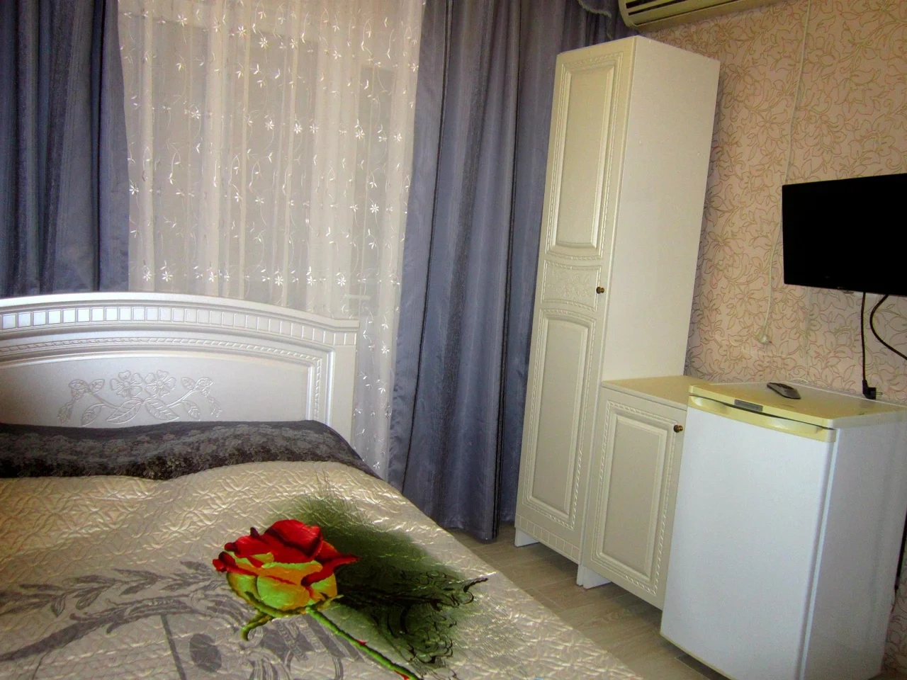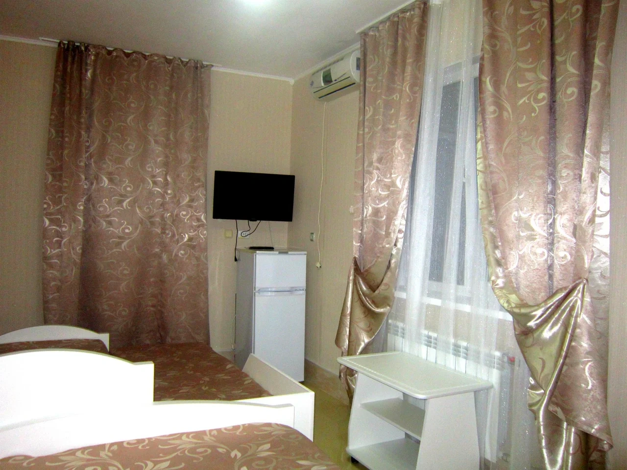 В Гостевом доме имеются 2-х местные, 3-х/4-х местные номера с высоким уровнем комфорта. В каждом номере кондиционер, душ и туалет, холодильник, телевизор.