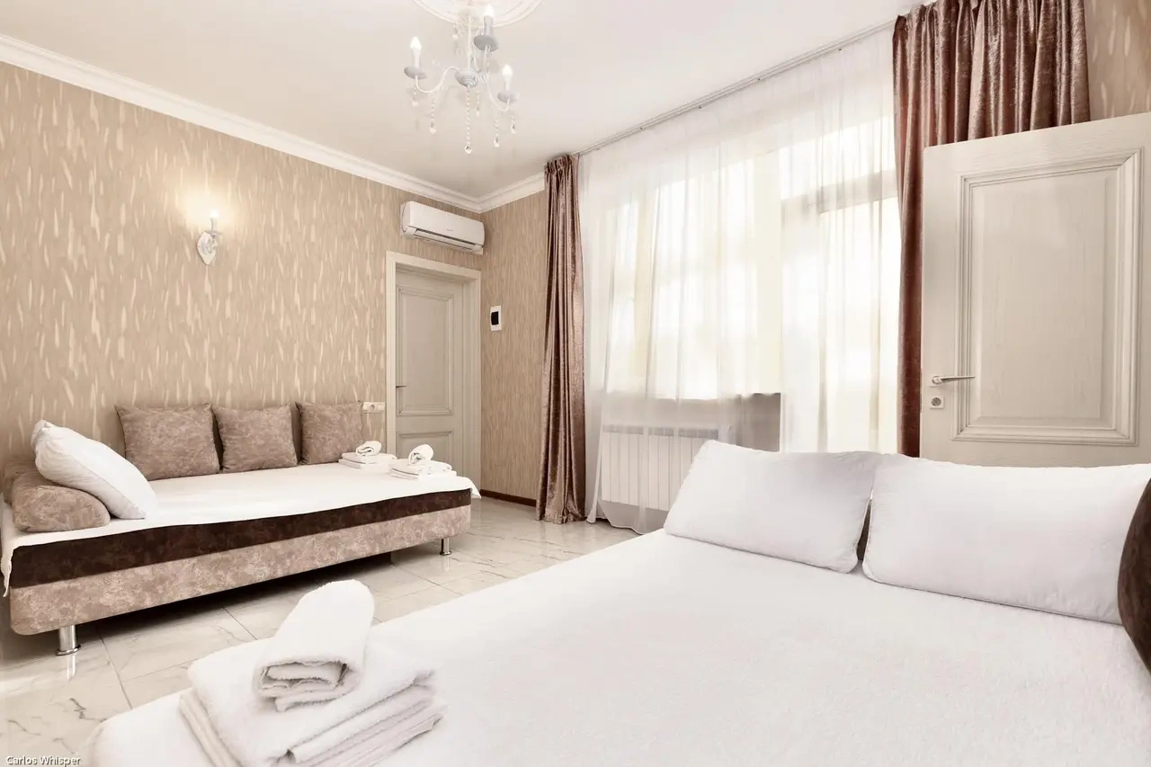 Можно приобрести за дополнительную плату: Трансфер от ж/д вокзала, Трансфер до ж/д вокзала, Трансфер из аэропорта, Трансфер в аэропорт, Предоставление документов для отчетности, Постельное белье для всех гостей, Услуги экскурсовода, Помощь в организации осмотра достопримечательностей, Пользование стиральной машиной