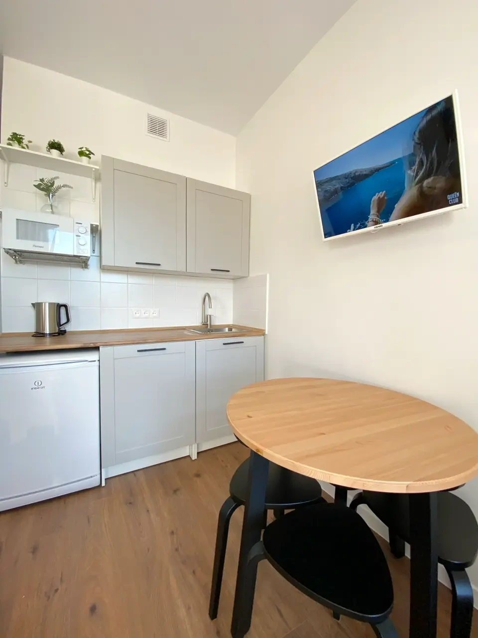 Квартира студия, есть кондиционер, телевизор, холодильник, то есть все что нужно для комфортного проживания