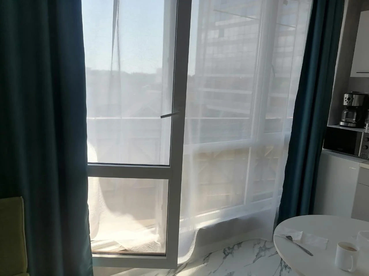 Студия с огромным балконом и всеми удобствами в самом центре Адлера. До моря 7 минут пешком по набережной реки Мзымты. До Красной поляны 35 мин на маршруте или каршеринге, ходит прямой автобус, остановки прямо у дома. Рядом торговые комплексы, магазины, рестораны, кафе. В шаговой доступности адлерский рынок и остановки общественного транспорта. От аэропорта - 5-7 минут на такси. В квартире есть все необходимое для комфортного пребывания двух человек. Есть третье спальное место - раскладной кресло-диван. В квартире сделан новый ремонт и новая мебель .