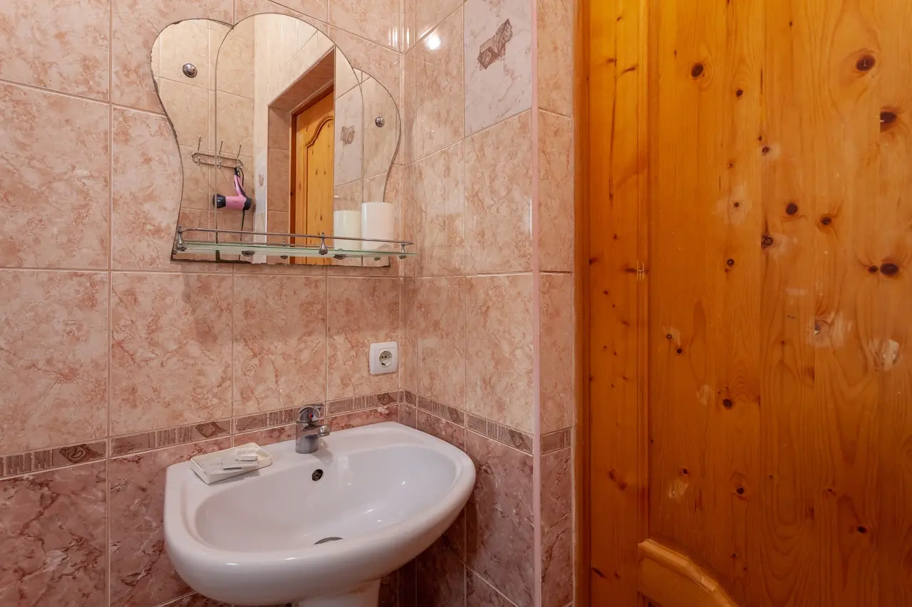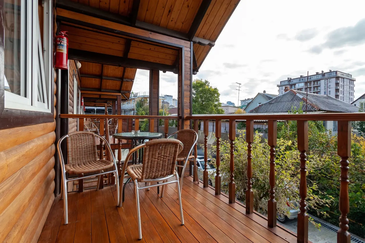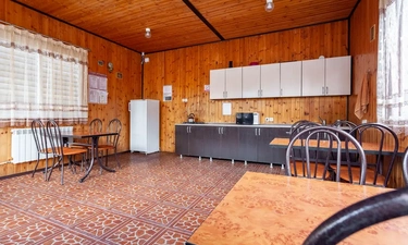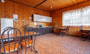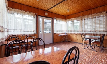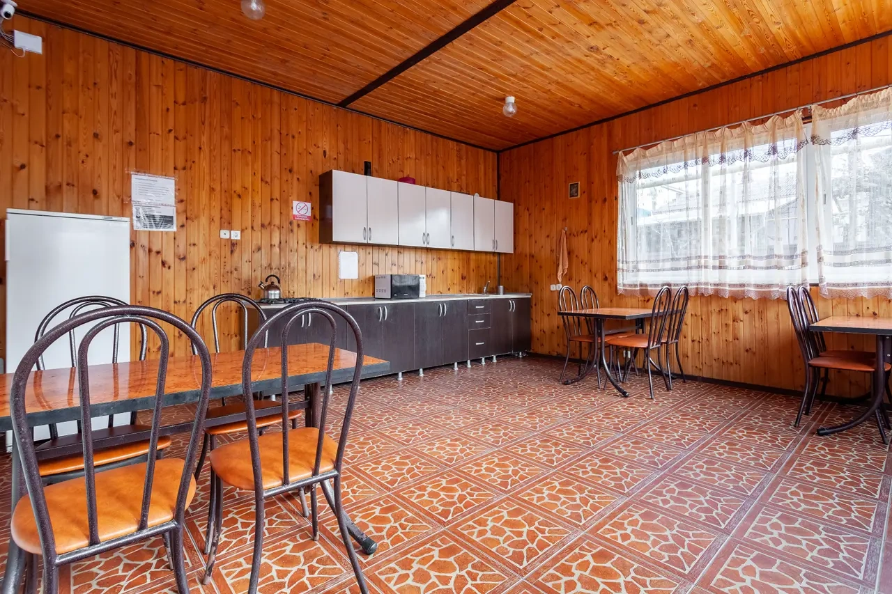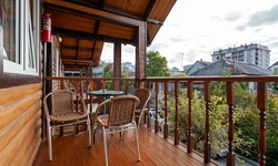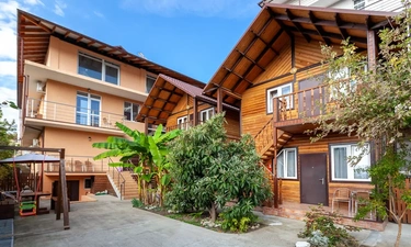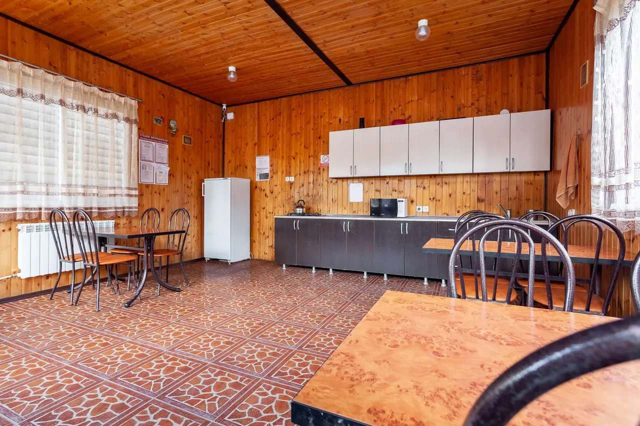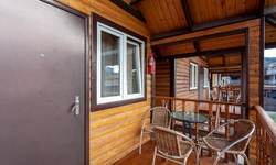 На территории находятся 4 деревянных домика (номера полностью отделаны деревом) и 3х этажное блочное здание .