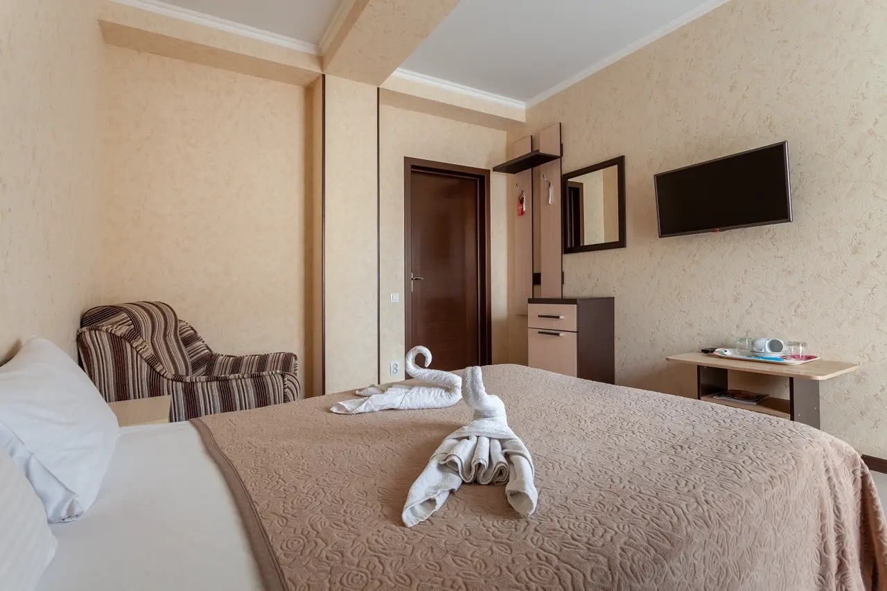 Уборка номеров.смена полотенец через 3 дня смена постельного белья ч/з 6 дней Парковка по предварительной заявке-250 руб/сут.оплачивается в отеле Детская кроватка по запросу - 300 руб