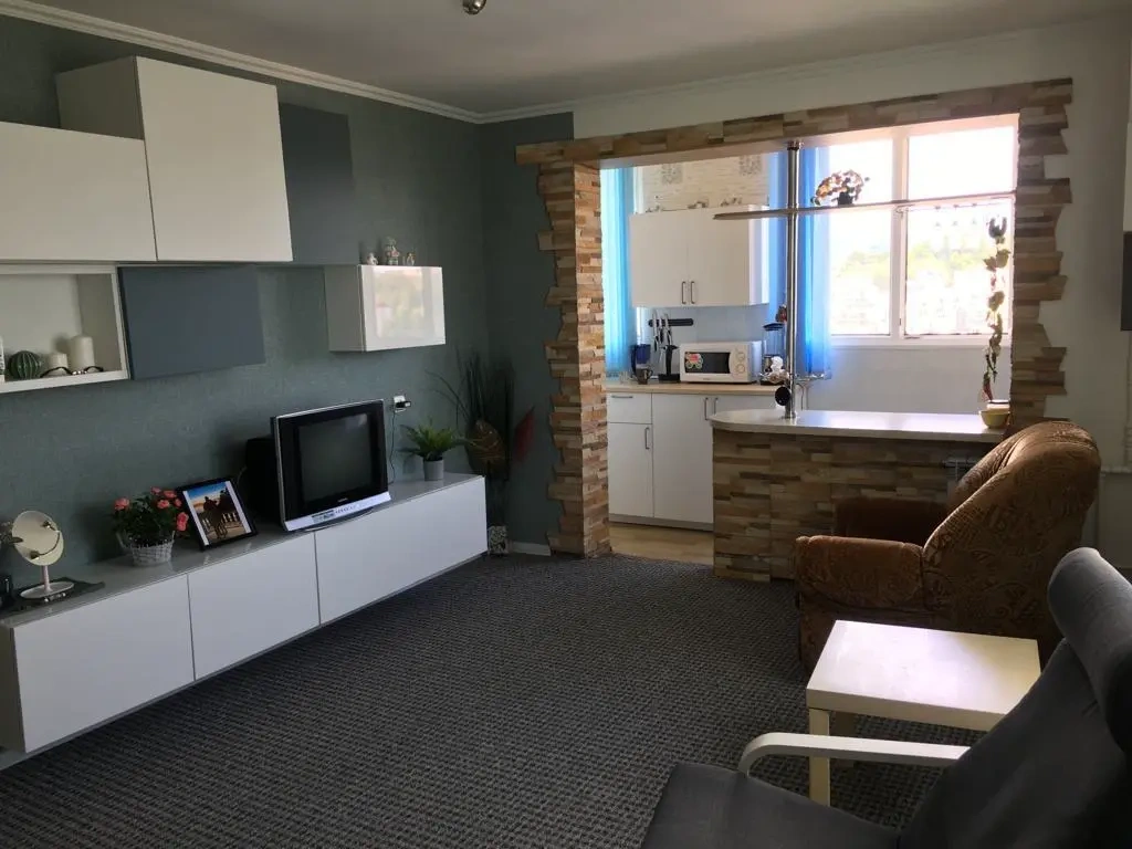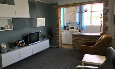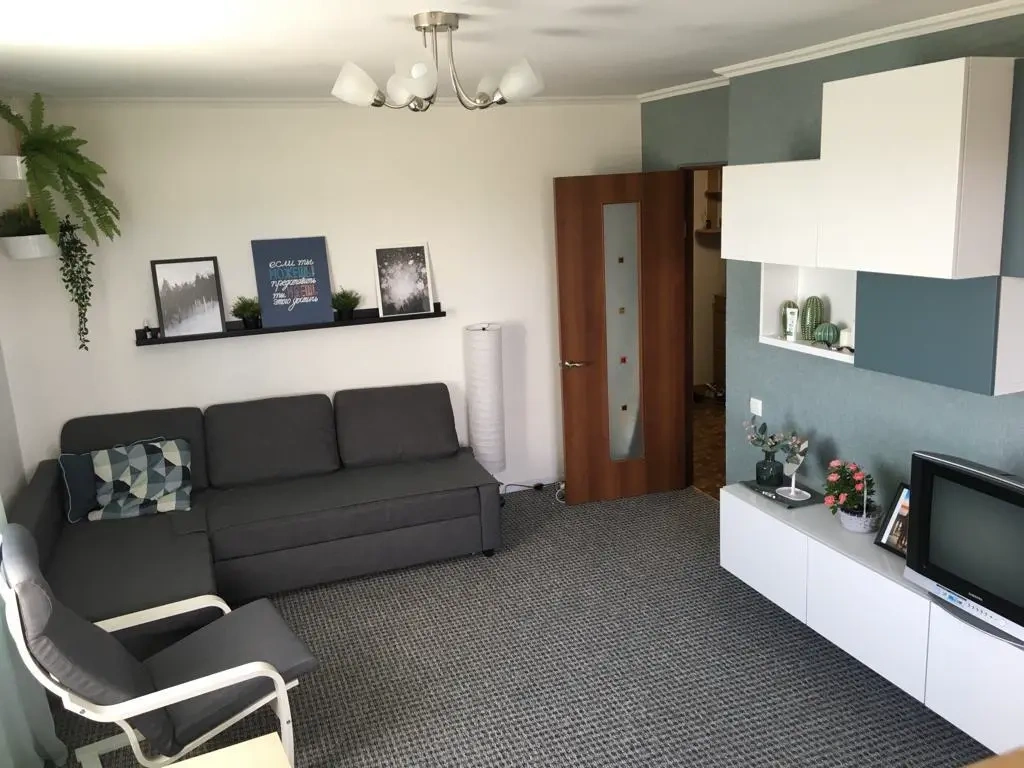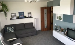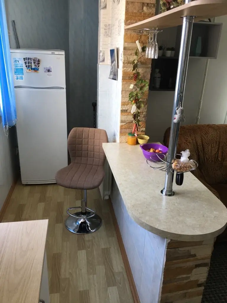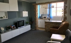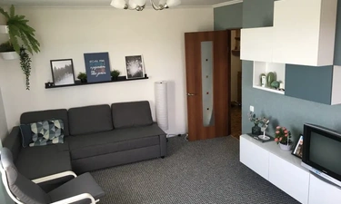 Две большие комнаты, одна из которых-гостиная. Кухня отдельно. 3 кровати. Одна ванная комната.
