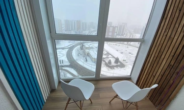 В нашей квартире "Выше неба" вы можете по утрам пить горячий кофе на балконе и наслаждаться прекрасным видом.