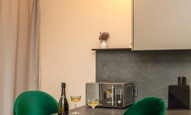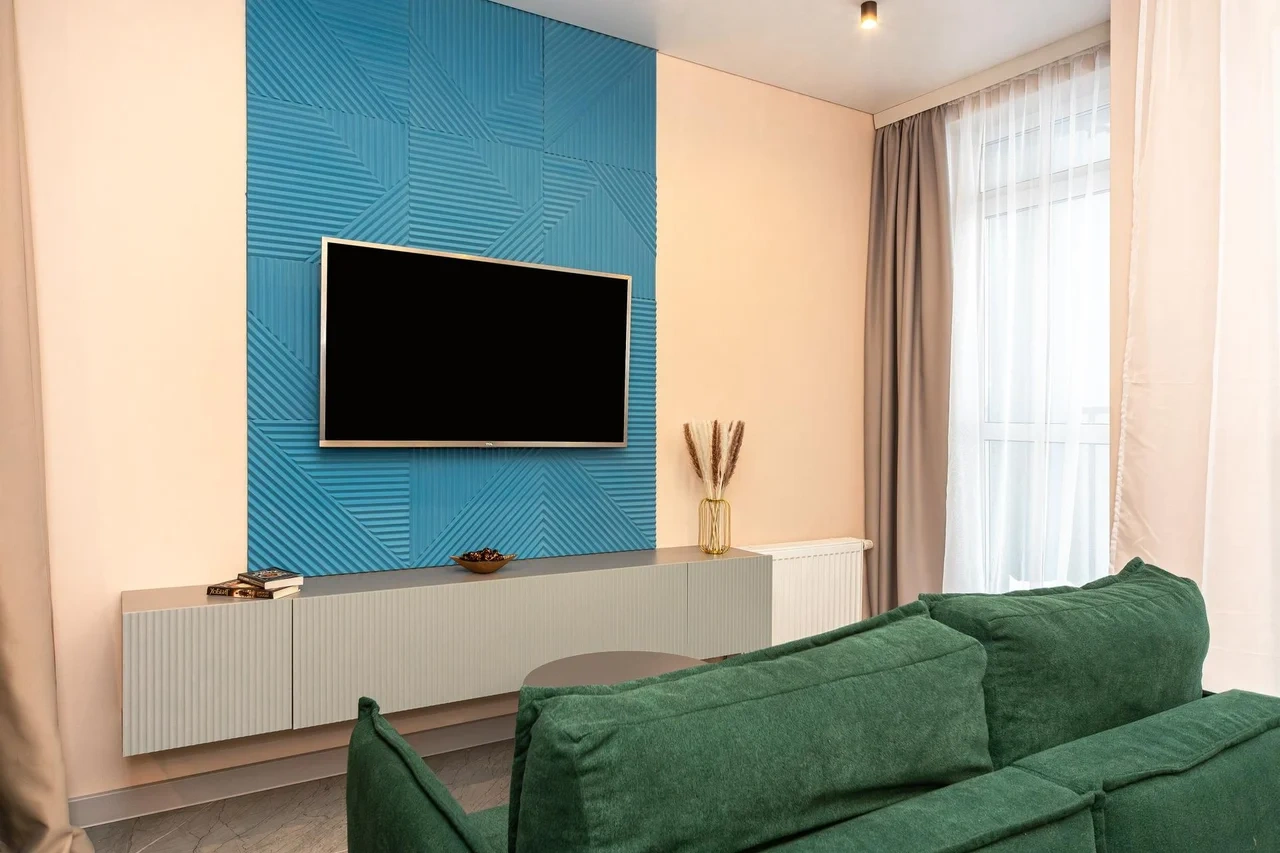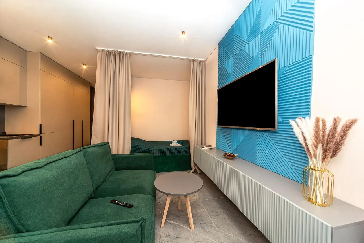 новая современная техника, встроенный холодильник с низким уровнем шума, телевизор,