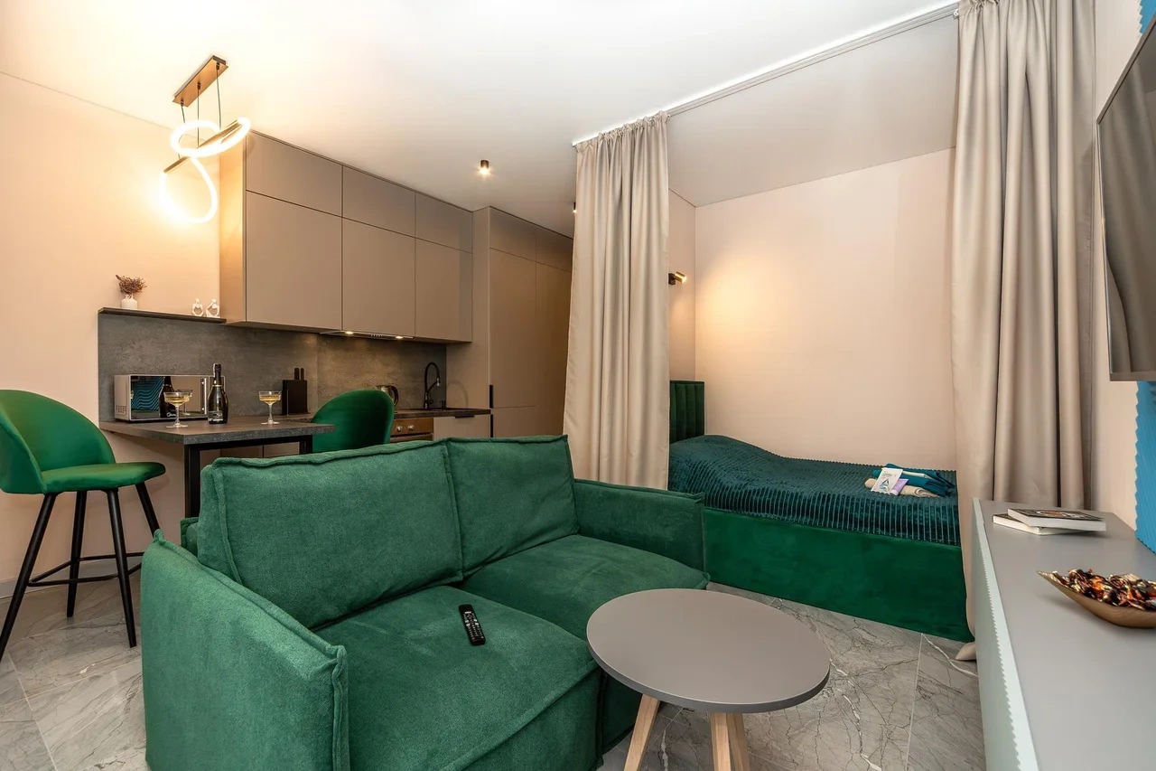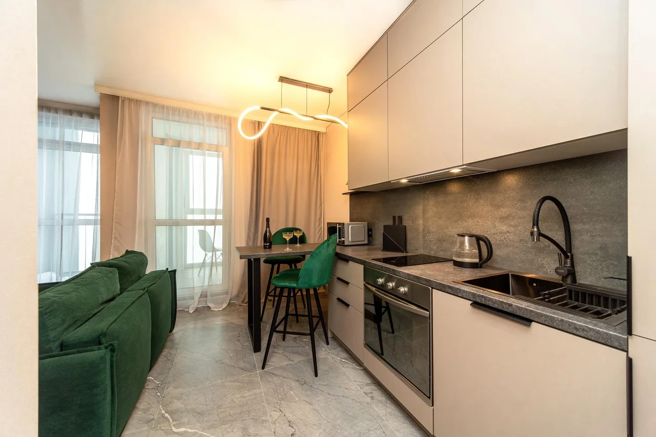 Новая, уютная, современная, квартира-студия расположенная на 25 этаже с прекраснейшем видом на панораму города и на старый аэропорт с размещением до 4 человек, на недели, сутки.