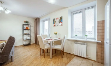 Положительным отзывам не верьте. Квартира действительно очень требует ремонта, мебель не та, что на фото. Диваны требуют чистки, подушки на них очень грязные (хоть бы постирали, брезгливо прикасаться), постельное «затасканное» в катышках. Полотенец для лица нет, банные похоже не стираны после предыдущих гостей, заметила даже следы крови на одном, кухонное полотенце с неприятным запахом. Вобщем, ни полотенца , ни постельное белье порошком не пахли, признаков стирки не заметили. Стулья старые, скрипучие, «бабушкины» (не те, что на фото). Холодильник не помыт, запах присутствовал свежего укропа???? Вобщем, особо там никто не убирается. Самое главное - туалетной бумаги не было вообще. На просьбу предоставить бумагу никто не отреагировал????♀️ Сервис стал совсем не тот, что был раньше в Минске. Сдают все , что можно сдать и получить копейку, причем далеко не за малые деньги. Выжимают из квартир все, что можно до последней капли, не вкладывая ничего, а жаль. Пользуются тем, что спрос на аренду апартаментов высокий. Поэтому бронировать нужно прям заранее