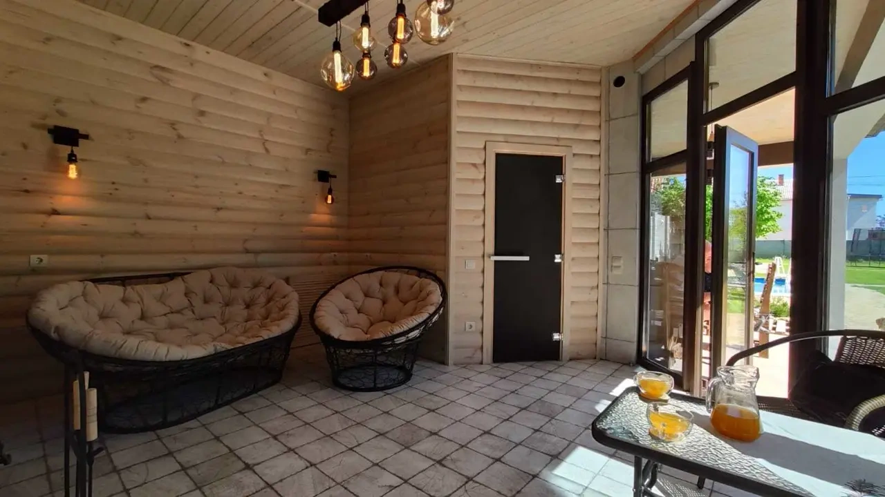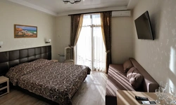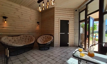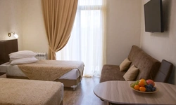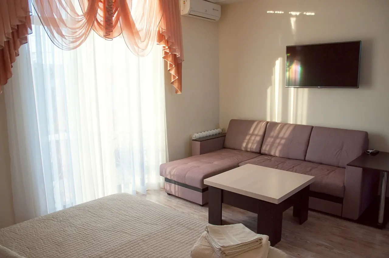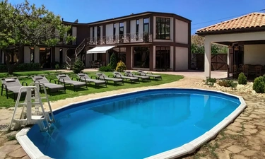 Это новый комфортабельный мини отель. Находится в самом живописном месте города Севастополя — на мысе Фиолент. Интерьер отеля погружает вас в атмосферу комфорта. Отель расположен в уникальном микро климате. Рядом — парк из хвойных деревьев и море. Морской воздух наполнен фитонцидами реликтовой крымской сосны и можжевельника, что благоприятно сказывается на здоровье человека. Русская баня, а рядом небольшой бассейн, делают ваш отдых по настоящему качественным. Пляж каменистый, но это гарантия чистейшей воды в любое время года, даже в августе. До самого центра города 10 минут на машине, либо на любом автобусе (астоновка 150 метров в любую сторону). До песочного пляжа 7 минут. Парковка рядом с отелем бесплатная. Гастрономические гурманы насладятся блюдами нашей кухни и вкусом молодых крымских вин. До встречи в Крыму!