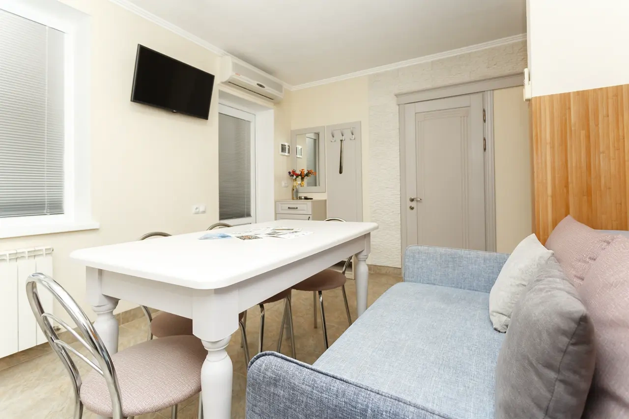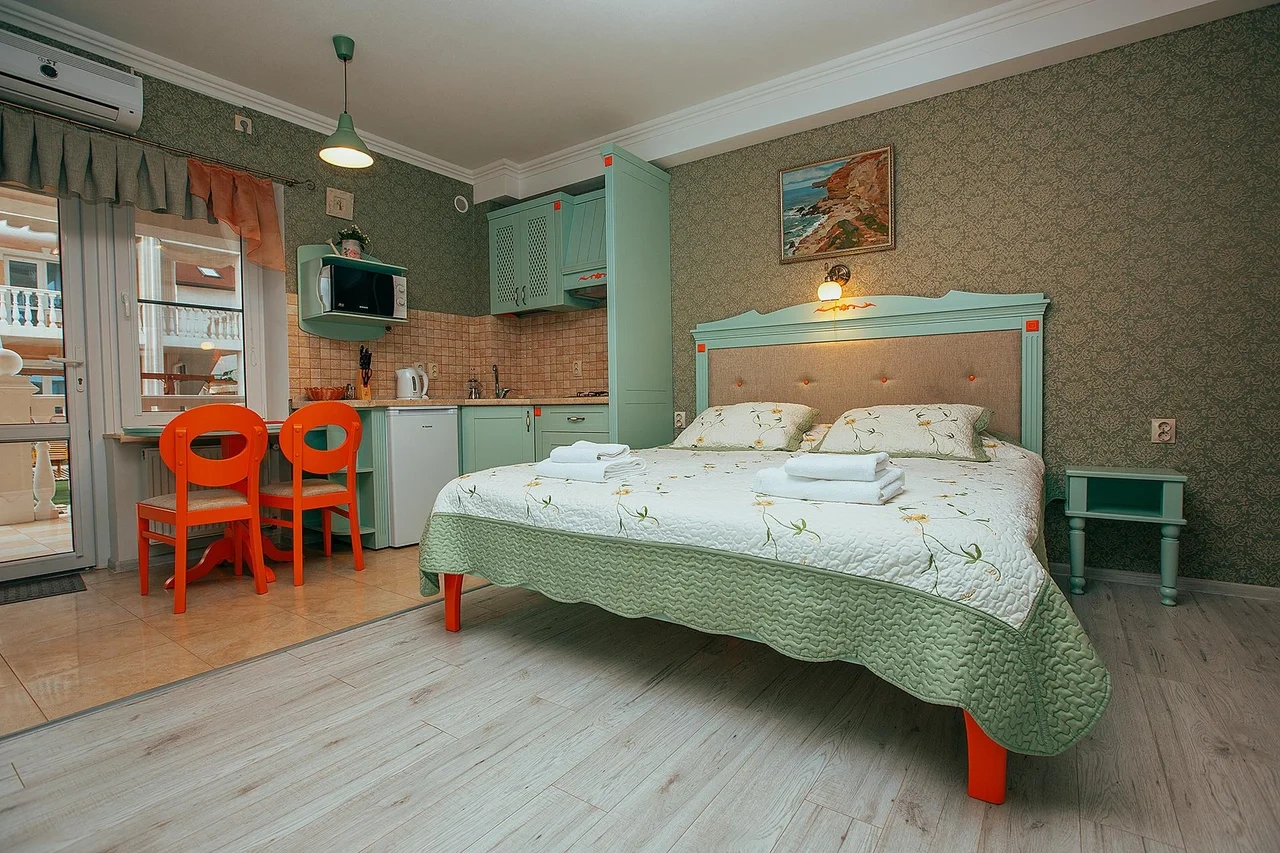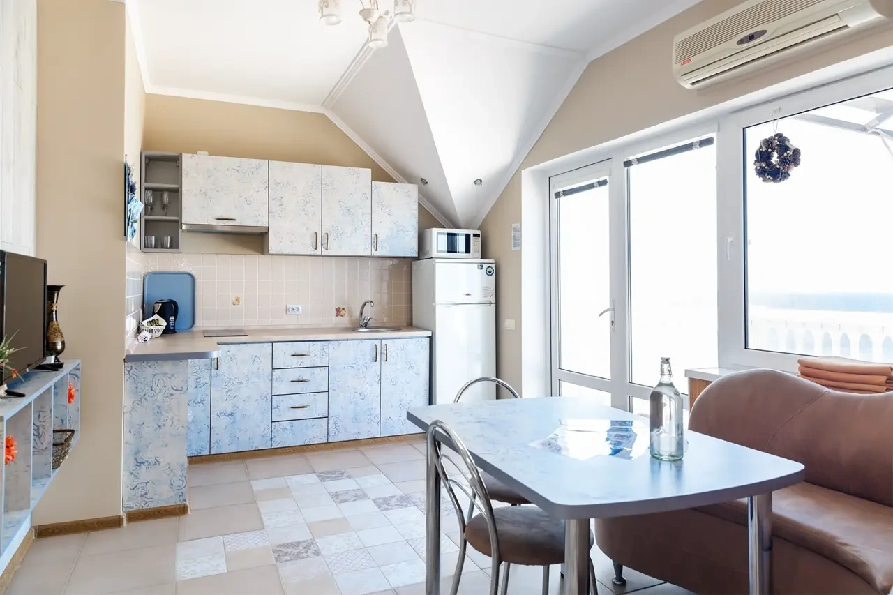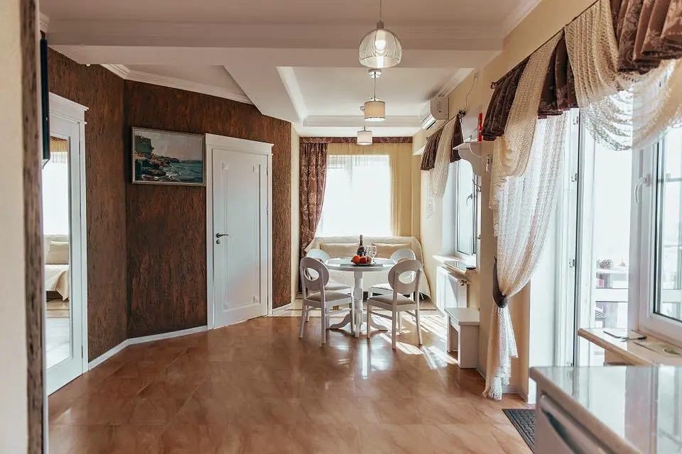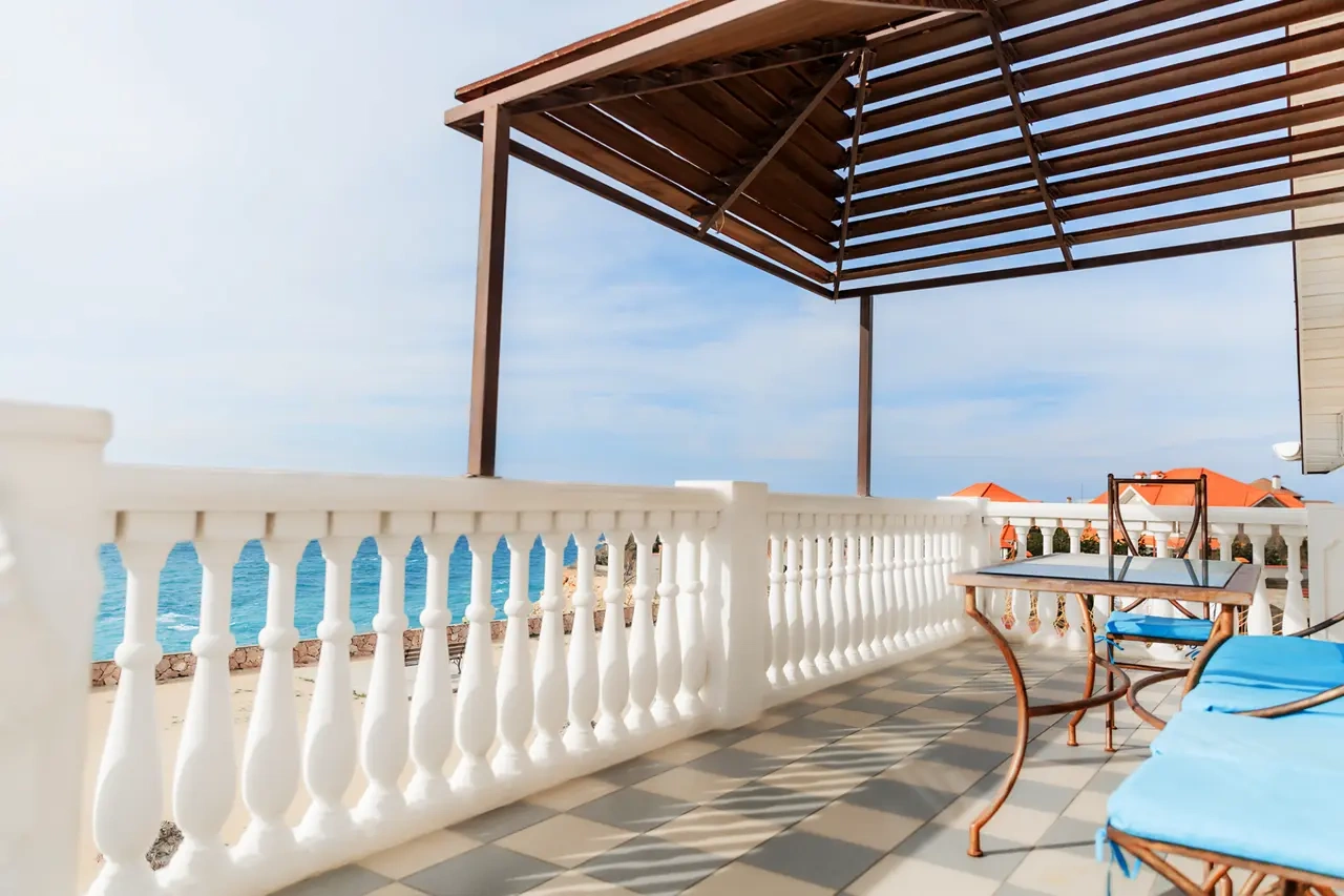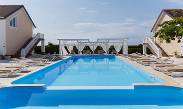 Отель у моря в Севастополе. Наш отель расположен в Севастополе в знаменитой бухте Казачья по соседству с музеем 35-я Батарея. Парк Победы и Бухта Омега 10км. Комплекс расположен на скале с видом на открытое море с террас апартаментов. Каждый апартамент имеет свою террасу на этаже. У Нас вы увидите не стандартное решение пляжного отдыха. На пляж ведут ступеньки прямо в скале, пляж оборудован ровной площадкой для отдыха и Wi Fi. Вас будут окружать только не большое количество наших гостей, море и скалы. В 2-ух км. есть ресторан и галечный пляж "Голубая бухта" с арендой каяков и SUP бордов. Для вас 12 апартаментов с кухней от 2х до 6ти человек, Лофт на крыше у бассейна и отдельный коттедж на 8+ человек. Детская площадка с горкой, качелями и батутом. Лаунж зоны у бассейна 20м. на солнечной и теневой стороне. Большая общая беседка с мангалом на 16 человек и 2 мангала у семейных корпусов. Бассейн на крыше. Аренда зала для конференций и мероприятий с караоке. Русская баня. Парковка и набережная для прогулок с Вашими питомцами.
