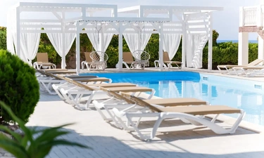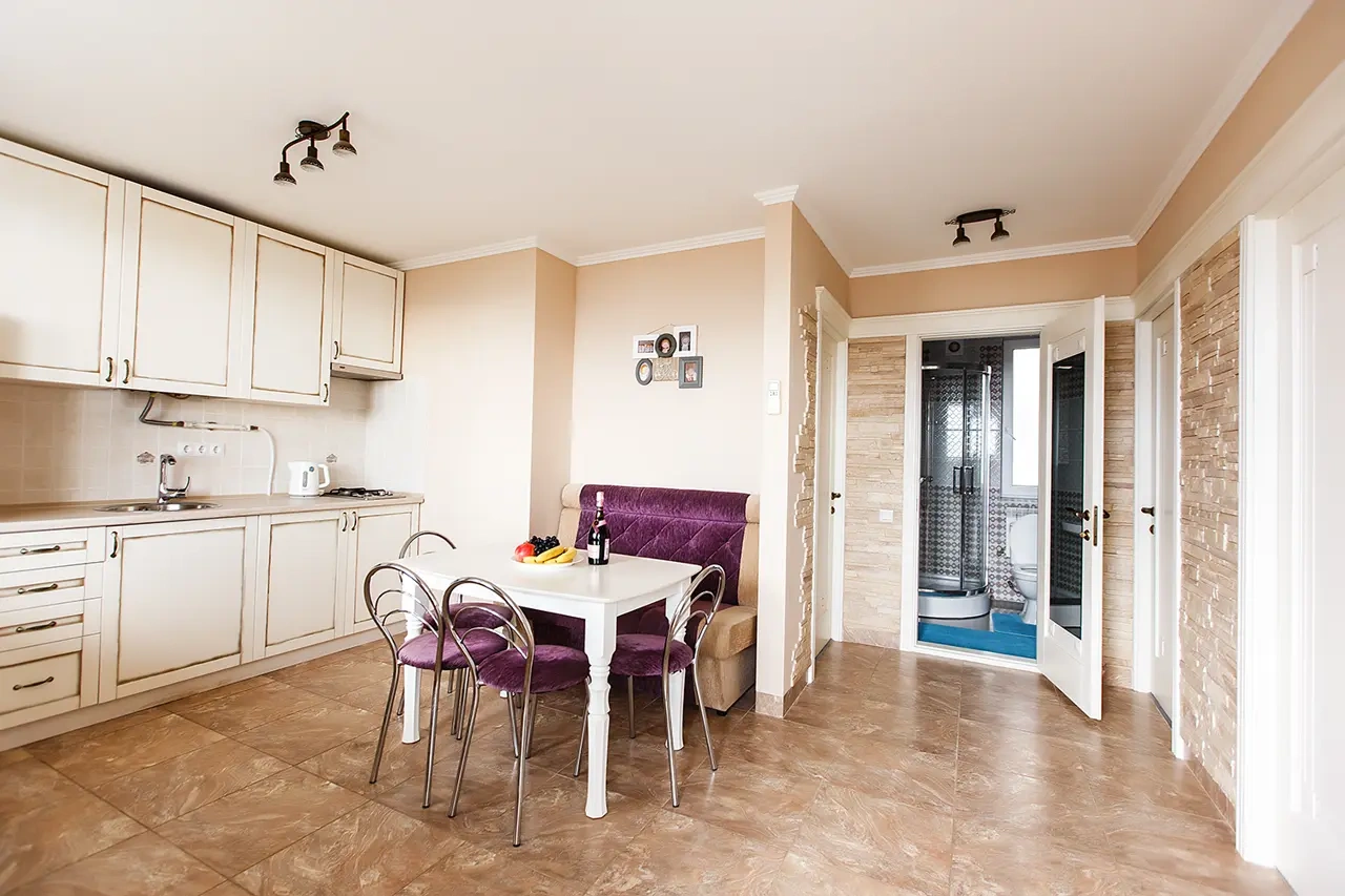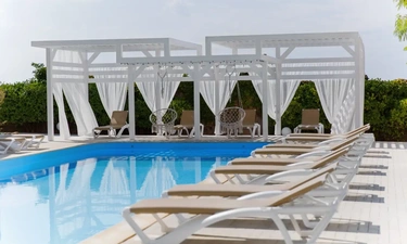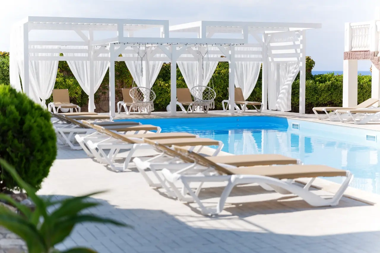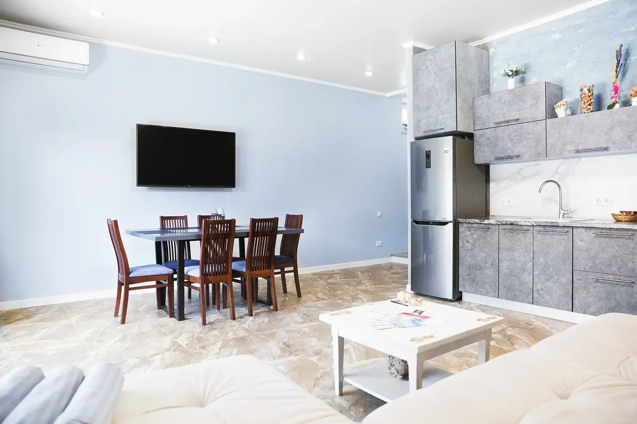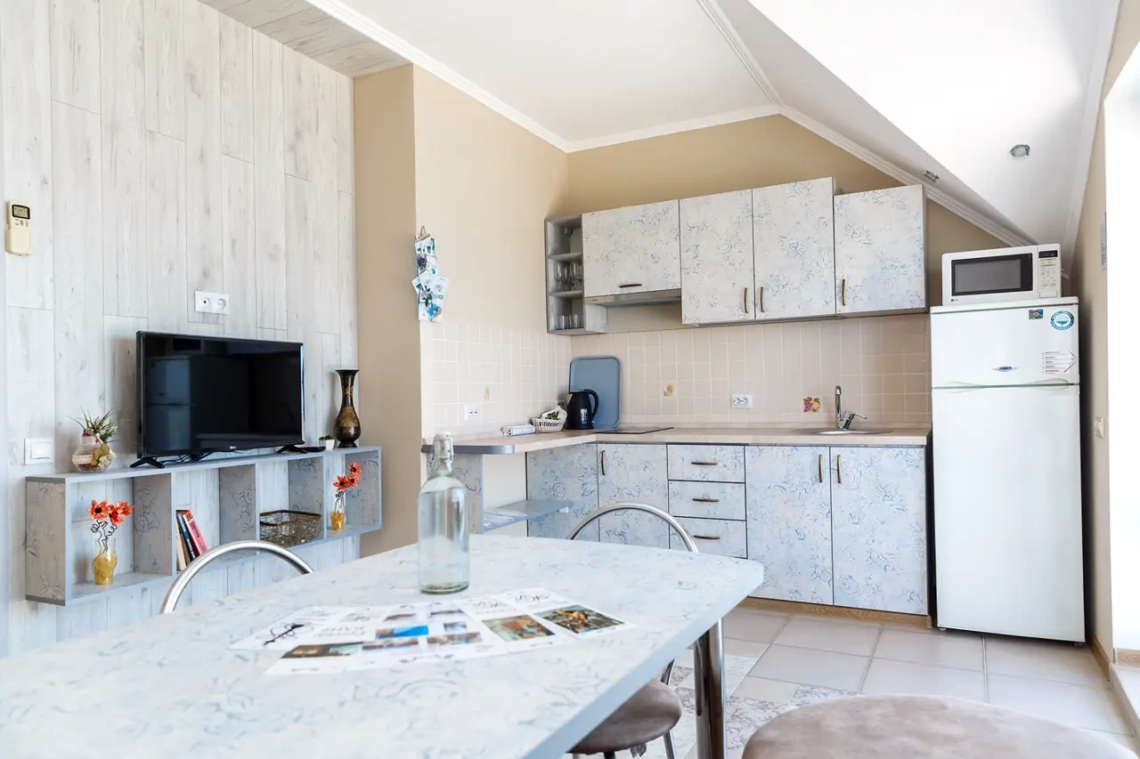 Отель у моря в Севастополе. Наш отель расположен в Севастополе в знаменитой бухте Казачья по соседству с музеем 35-я Батарея. Парк Победы и Бухта Омега 10км. Комплекс расположен на скале с видом на открытое море с террас апартаментов. Каждый апартамент имеет свою террасу на этаже. У Нас вы увидите не стандартное решение пляжного отдыха. На пляж ведут ступеньки прямо в скале, пляж оборудован ровной площадкой для отдыха и Wi Fi. Вас будут окружать только не большое количество наших гостей, море и скалы. В 2-ух км. есть ресторан и галечный пляж "Голубая бухта" с арендой каяков и SUP бордов. Для вас 12 апартаментов с кухней от 2х до 6ти человек, Лофт на крыше у бассейна и отдельный коттедж на 8+ человек. Детская площадка с горкой, качелями и батутом. Лаунж зоны у бассейна 20м. на солнечной и теневой стороне. Большая общая беседка с мангалом на 16 человек и 2 мангала у семейных корпусов. Бассейн на крыше. Аренда зала для конференций и мероприятий с караоке. Русская баня. Парковка и набережная для прогулок с Вашими питомцами.