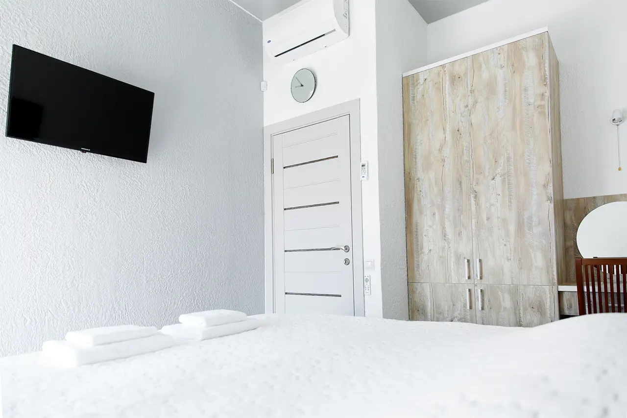 Номер люкс с двумя спальнями с одним кондиционером, приходилось спать с открытыми спальнями. Нет москитных сеток в спальнях на окнах комары съели. Дверь входная еле открывается. В туалете постоянно неприятный запах. В день отъезда отключили воду и в отеле даже нет никаких накопительных емкостей, это огромный минус. Интернет с перебоями конкретными работал.