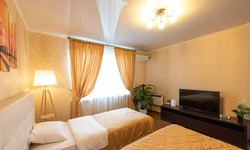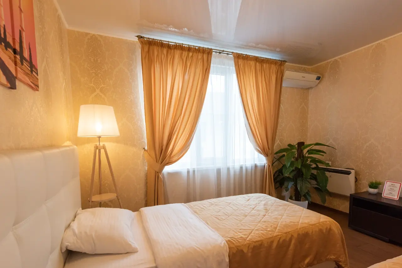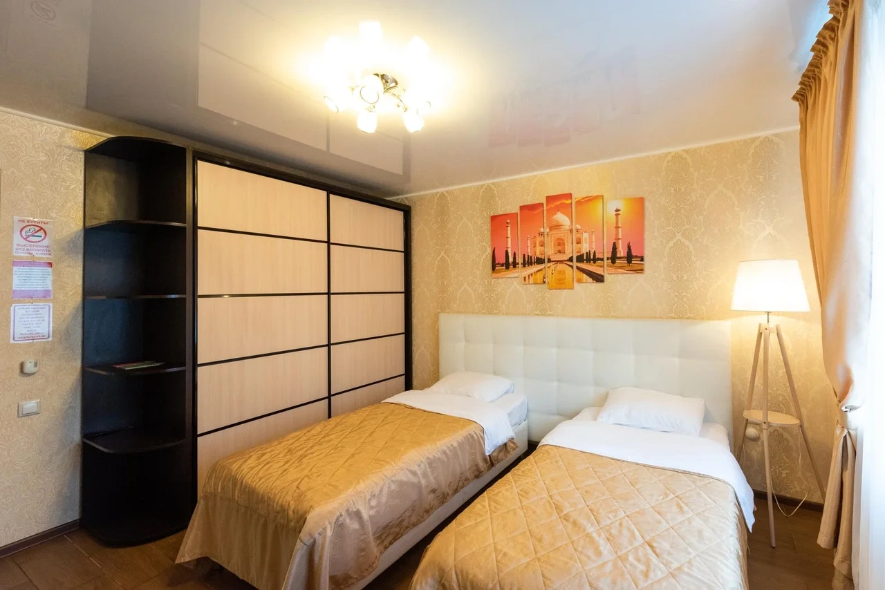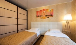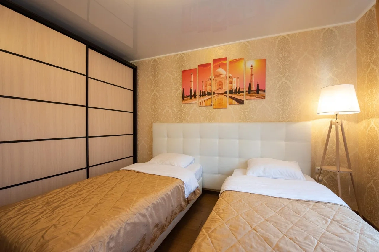 Комфортный просторный номер с двумя односпальными кроватями, состоящий из спальни, собственной кухни и ванной. В номере большой телевизор, кондиционер, сейф, стиральная машина, плита, холодильник, много посуды и есть даже кофемашина. Две односпальные кровати при необходимости сдвигаются в одну большую, также имеется дополнительная раскладная кровать с матрасом для одного ребёнка или взрослого. Идеально подходит для двух взрослых и одного ребёнка.