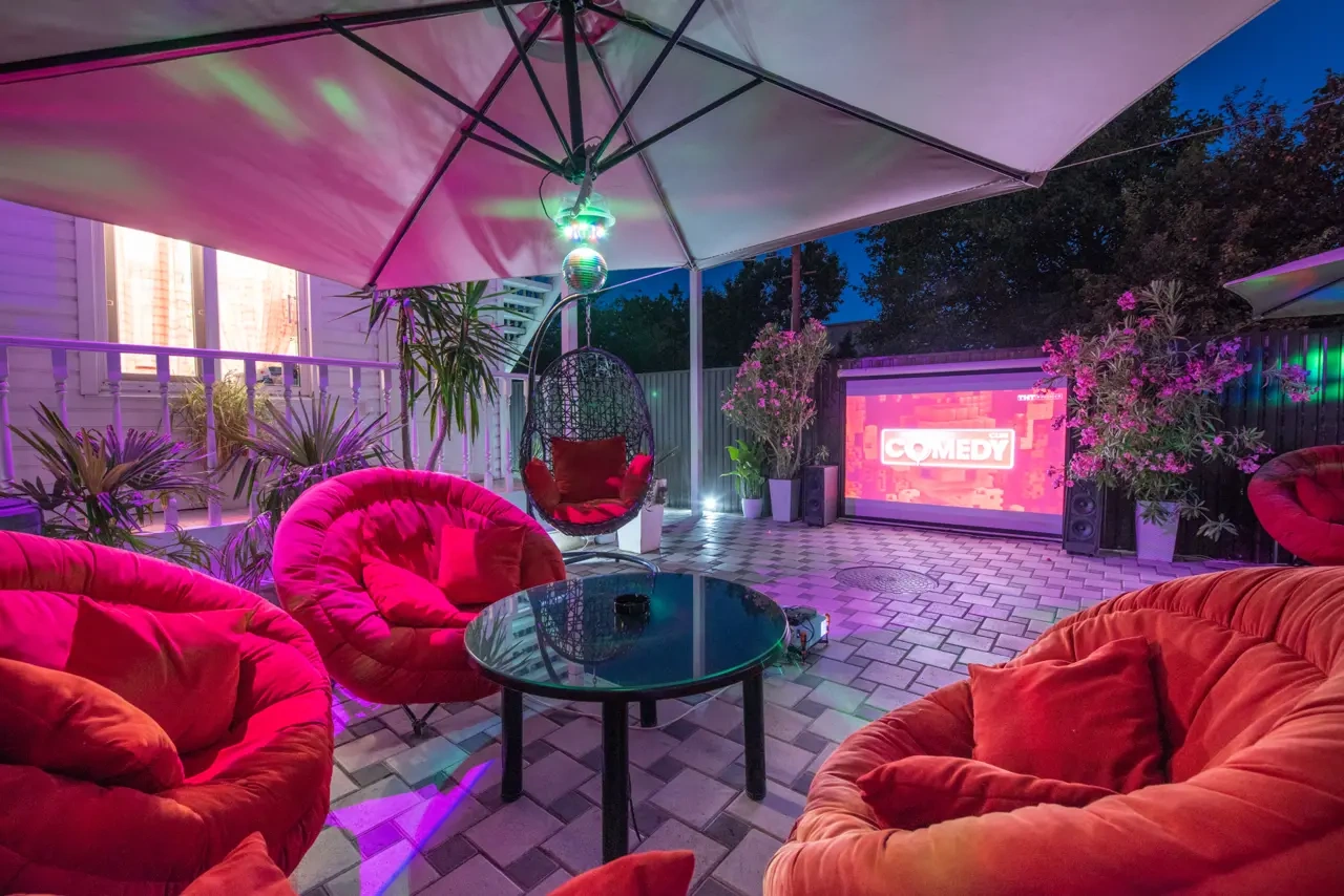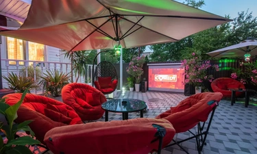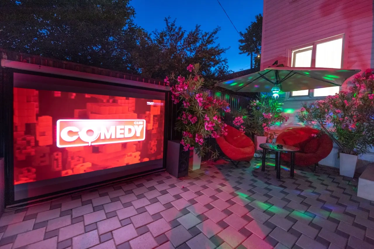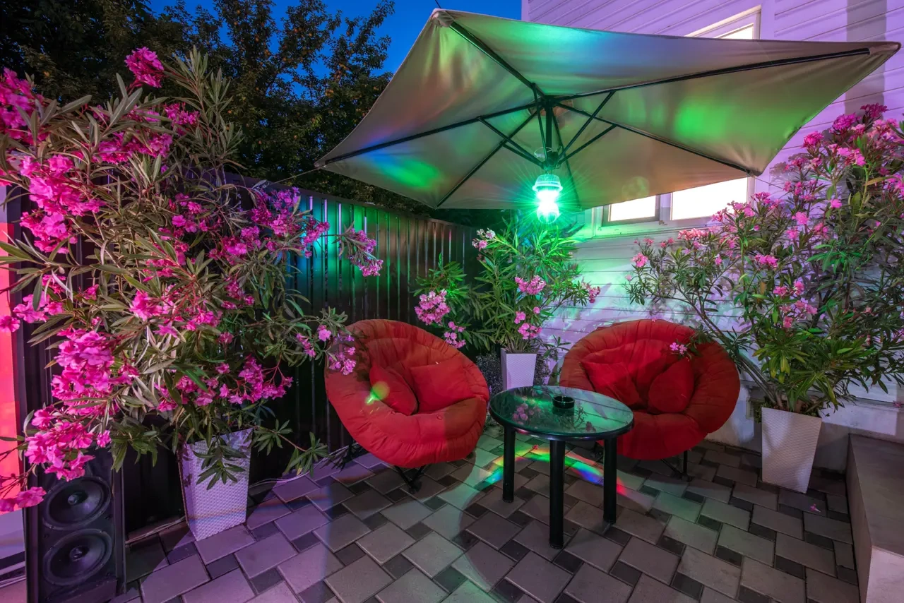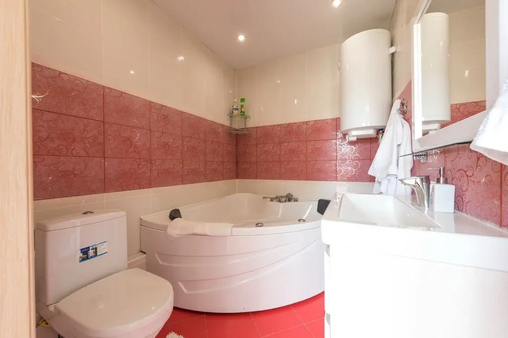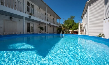 К вашим услугам уютные, комфортабельные, просторные номера со всеми удобствами: кондиционерами, гидромассажными ваннами или душевыми кабинками, телевизорами, сейфами. В каждом номере своя собственная кухня с холодильником, плитой, микроволновкой, полным набором посуды и даже личной кофе машиной. Отель принимает гостей круглый год: зимой здесь очень тепло, летом прохладно. Кровати с ортопедическими матрасами. На территории отеля имеется летний бассейн, лежаки, детские машинки, велосипеды и батут, летний кинотеатр-проектор с удобными креслами для отдыха как днём, так и вечером.