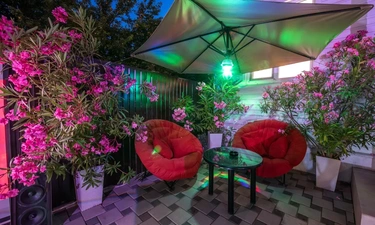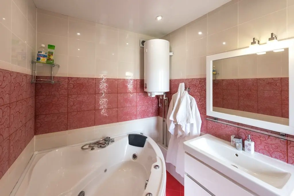 Роскошный просторный номер с одной большой двуспальной диван-кроватью, состоящий из спальни, собственной кухни и ванной. В номере большой телевизор, кондиционер, сейф, стиральная машина, плита, холодильник, много посуды и есть даже кофемашина. Двуспальная широкая диван-кровать с дополнительным удобным матрасом, также имеется раскладная кровать с матрасом для одного ребёнка. В номере имеется ванна джакузи. Идеально подходит для влюблённых и молодожёнов.