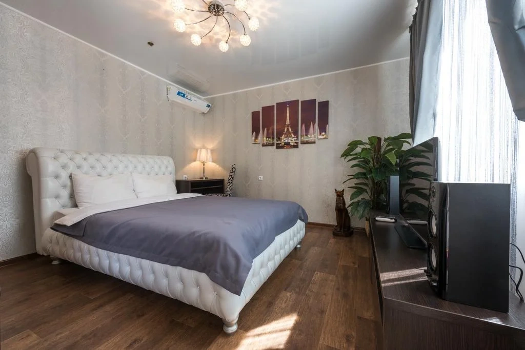 Комфортный просторный номер с одной двуспальная кровать, состоящий из спальни, собственной кухни и ванной. В номере большой телевизор, кондиционер, сейф, стиральная машина, плита, холодильник, много посуды и есть даже кофемашина. Двуспальная кровать с удобным ортопедическим матрасом, также имеется дополнительная раскладная кровать с матрасом для одного ребёнка или взрослого. Идеально подходит для семейной пары и одного ребёнка.