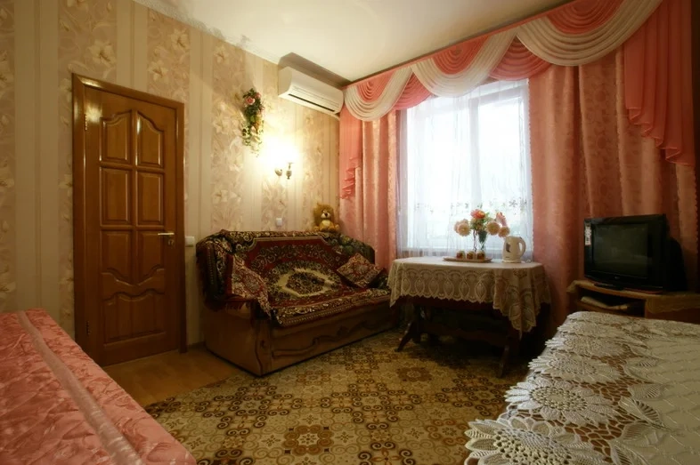 КОТТЕДЖ ОТ ХОЗЯЕВ! ЕСТЬ САУНА! 2-х этажный новый коттедж, тихий центр. Номера класса люкс различной вместимости и комфортности. В номерах есть всё необходимое.Новая мебель- большая деревянная кровать с ортопедическим матрасом; современные раскладывающиеся диваны, журнальный столик, шкаф, большое зеркало с комодом, стол, на окнах красивые ламбрекены, полы - ламинат. Сан.узел с новой сантехникой, стиральная машина, душевая кабина, кухня--холодильник, микроволновая печь,посуда. На 2-ом этаже спальня и зал 50м кв. с большим столом и кожаным и велюровыми мягкими уголками, встроенная стенка с посудой, холодильник,интернет--Wi-Fi: кондиционер, телевизор. Второй этаж можно использовать для проведения торжеств, деловых встреч и отдыха, здесь есть возможность разместить 10-15 человек. 1-й и 2-ой этажи также можно снять поэтажно; на каждый этаж-свой вход. Есть парковка для авто. МОЖНО ОТДЫХАТЬ В уютном, закрытом, тенистом ДВОРЕ ПОД НАВЕСОМ, где расположены комфортные столики и диванчики. Или проводить теплые летние вечера в красивой кованой беседке с мангалом,парковка