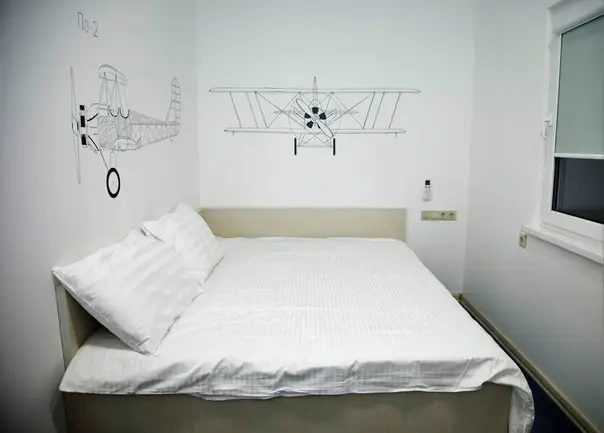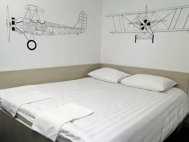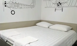 Семейный номер рассчитан на 4 человека, укомплектован полноразмерной двухъярусной и широкой двухспальной кроватями, в номере есть кондиционер и приточная вентиляция. Современный дизайн, стол и удобные спальные места с ортопедическими матрасами.