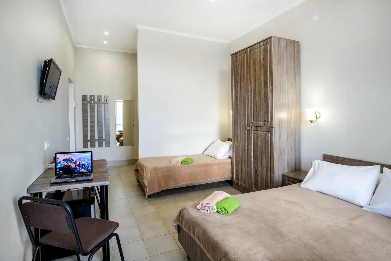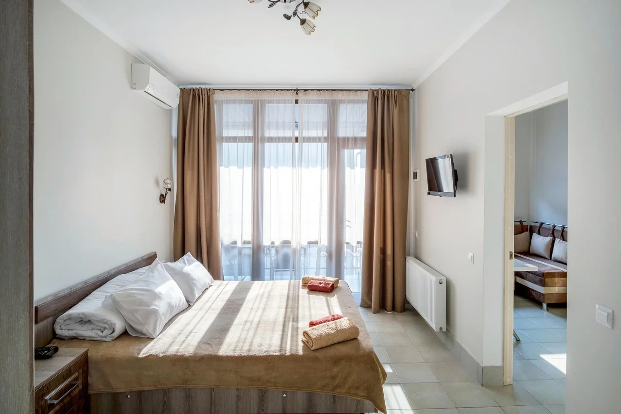 Семейный гостевой дом принимает гостей с 2015 года. Мы расположены в курортной зоне Севастополя в Любимовке . Широкая пляжная полоса , чистое море и тишина пригородной части Севастополя создадут наилучшие впечатления от отдыха в нашем гостевом доме. Современные , комфортабельные номера с панорамными окнами оставят приятные воспоминания. Натуральные вина местного завода порадуют своим качеством и ценой. Пляж "Любимовка" один из лучших пляжей Крыма. По вечерам у нас просмотры кинофильмов в летней беседке. Для гостей всегда очищенная вода и кофе, чай бесплатно. Ждем вас в гости!