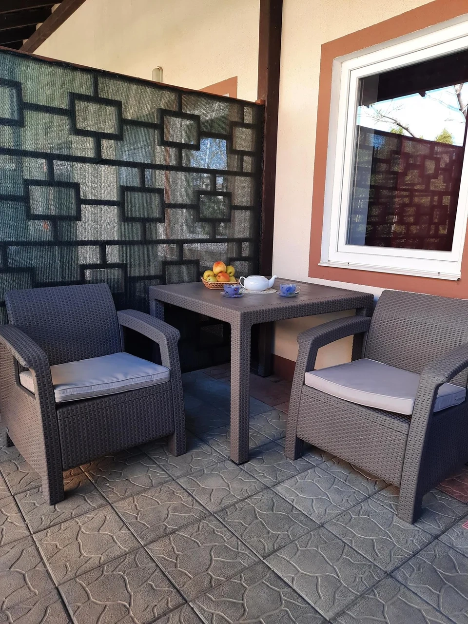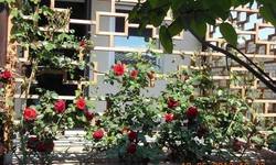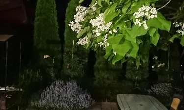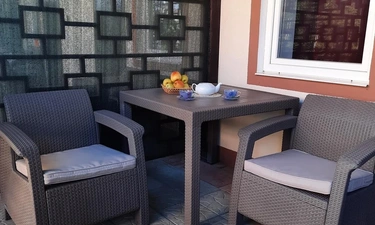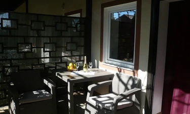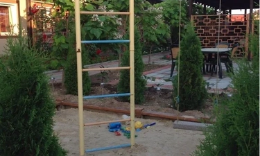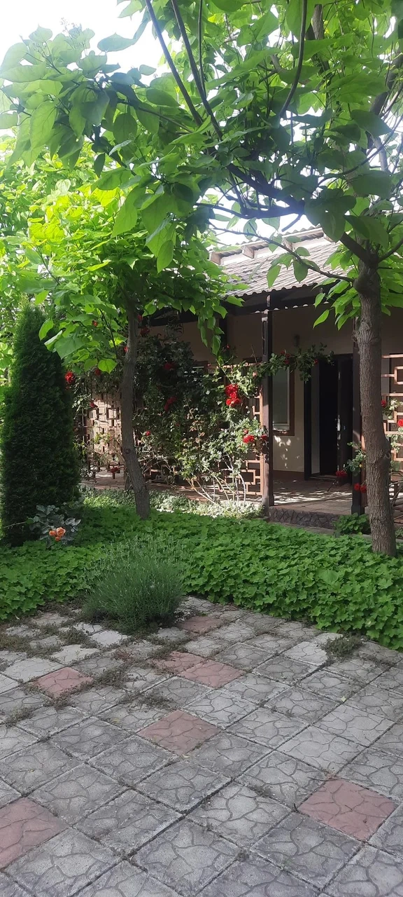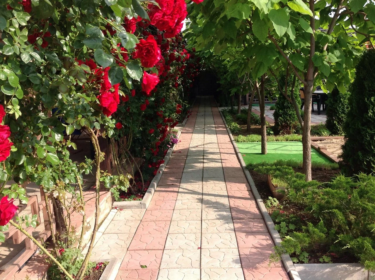 Уютный дворик, очень зеленая территория, создающая обилие тени и прохлады. Перед каждым номером своя беседочка со столиком, комфортными креслами для отдыха.